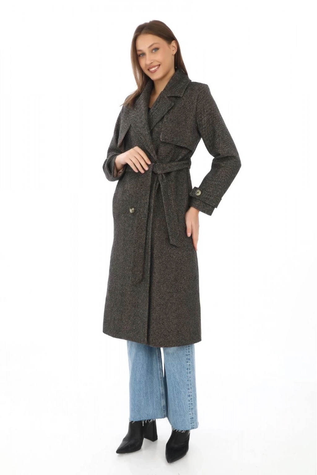Balık Sırtı Kaşmir Uzun Kaşe Kaban - Kahverengi -