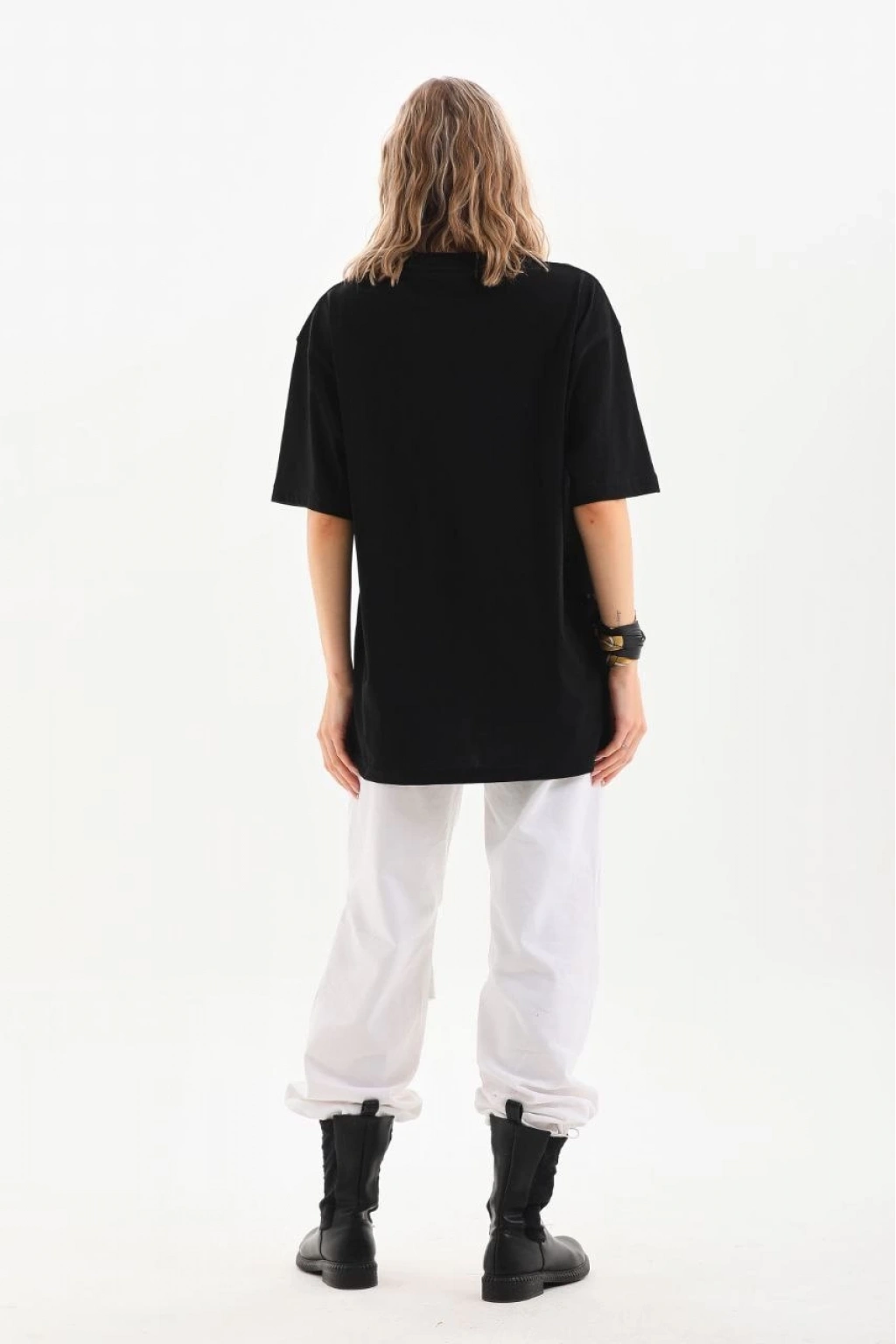 Bisiklet Yaka 20/1 Düz Oversize T-Shirt - Siyah -
