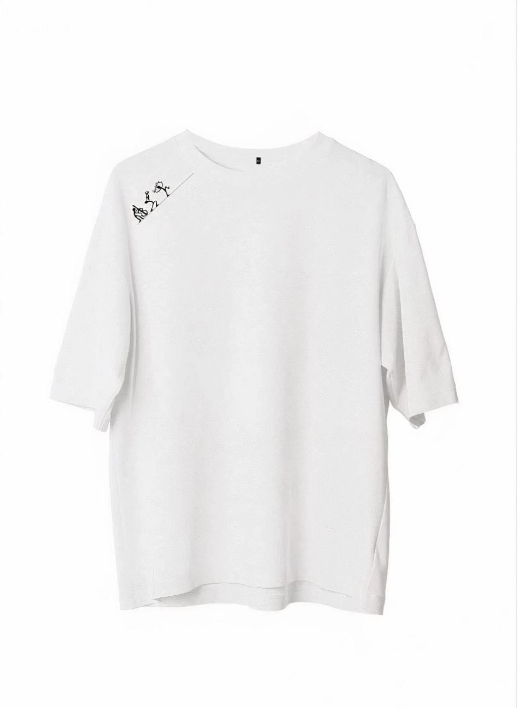 Bisiklet Yaka Baskılı Oversize T-Shirt - Beyaz -