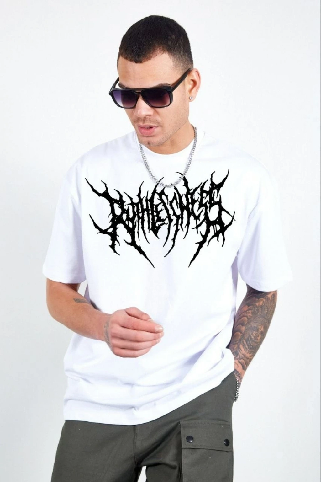 Bisiklet Yaka Baskılı Oversize T-Shirt - Beyaz -
