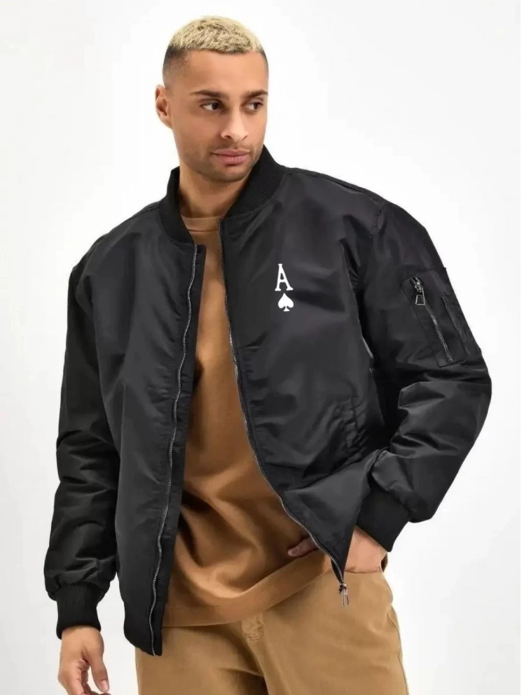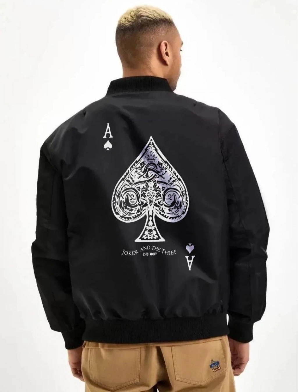 Bomber Mont – Siyah Renk, Maça Ası Baskılı -