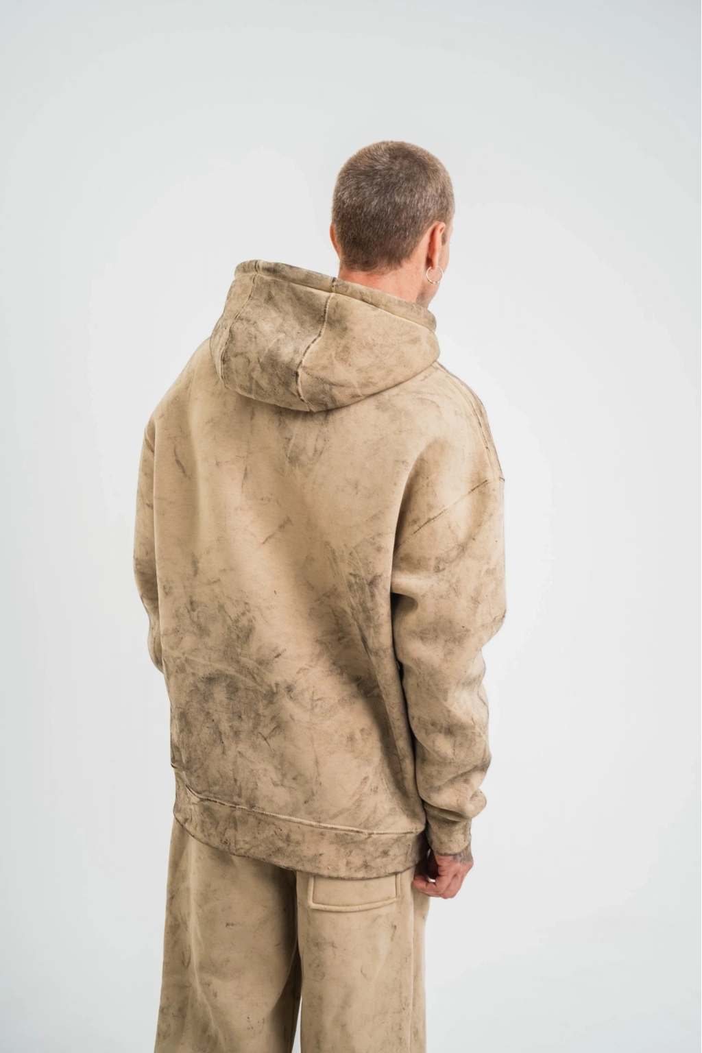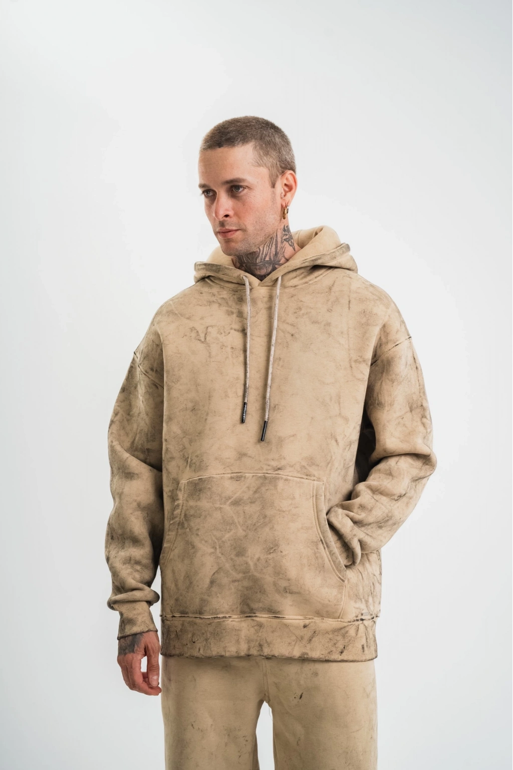 Double Oversize Kapşonlu Yıkamalı SweatShirt - Bej -