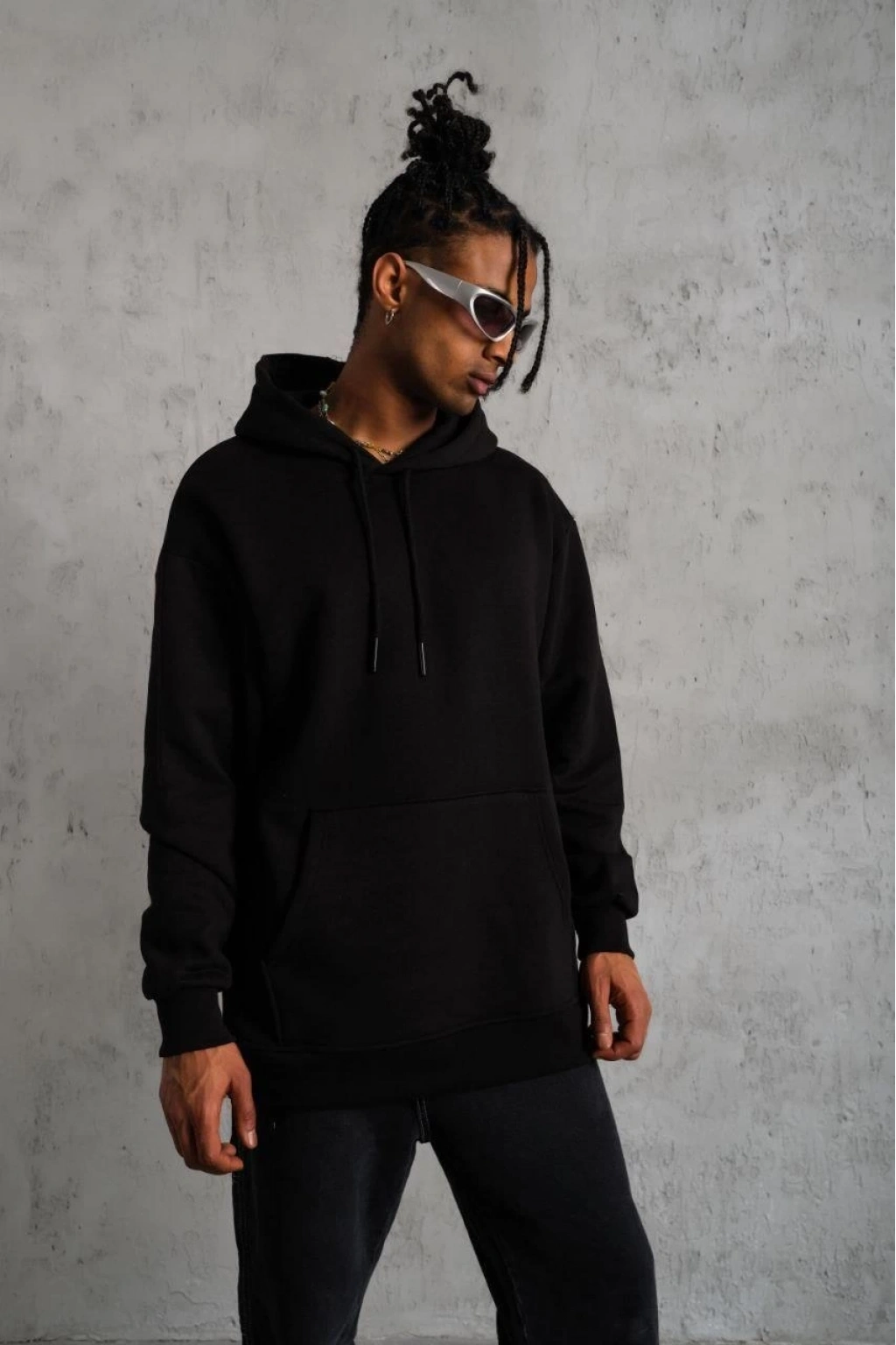 Düz Kapüşonlu Sweat - Siyah -
