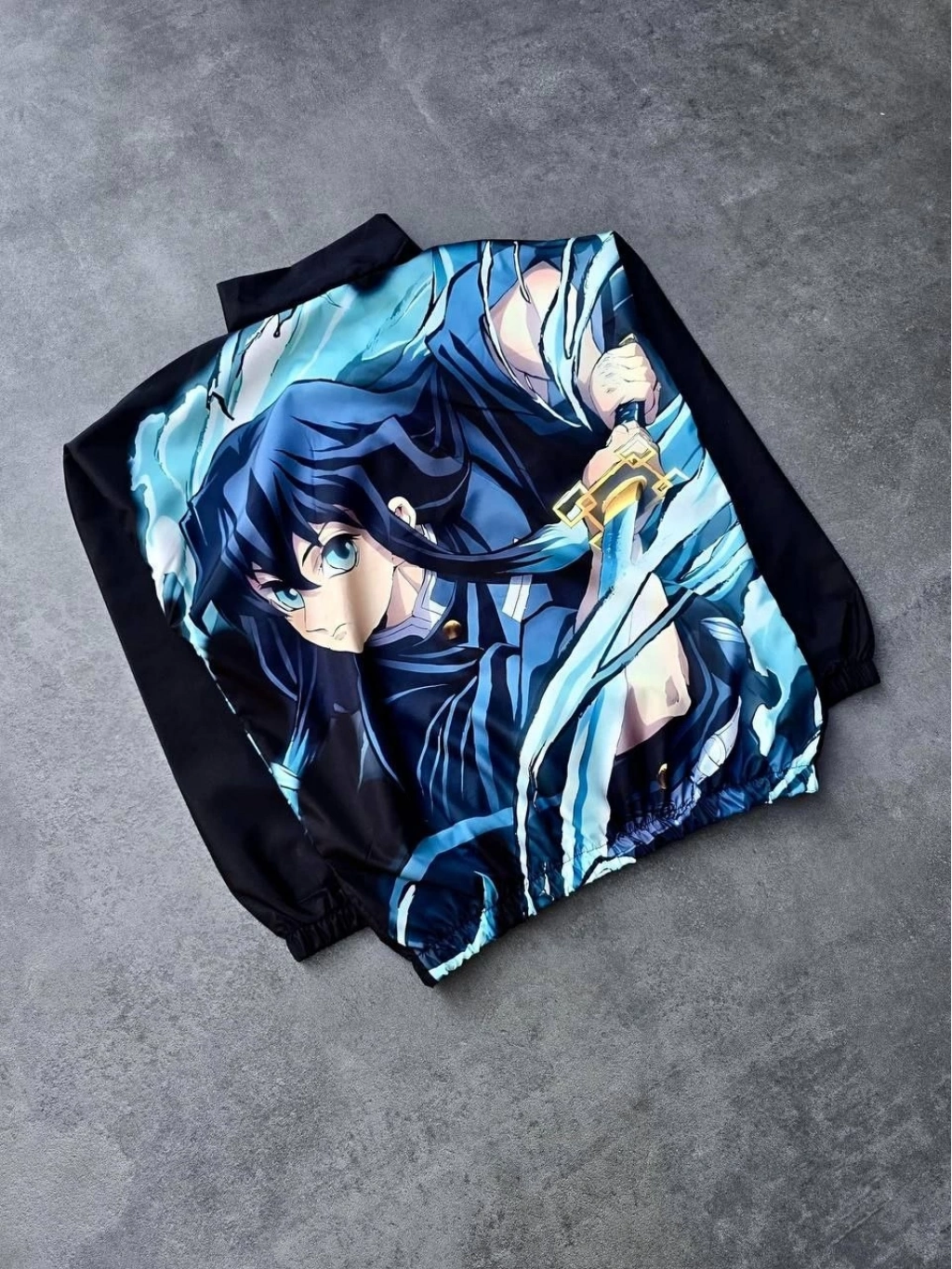 Fermuarlı Dijital Baskılı Rüzgarlık - Siyah -