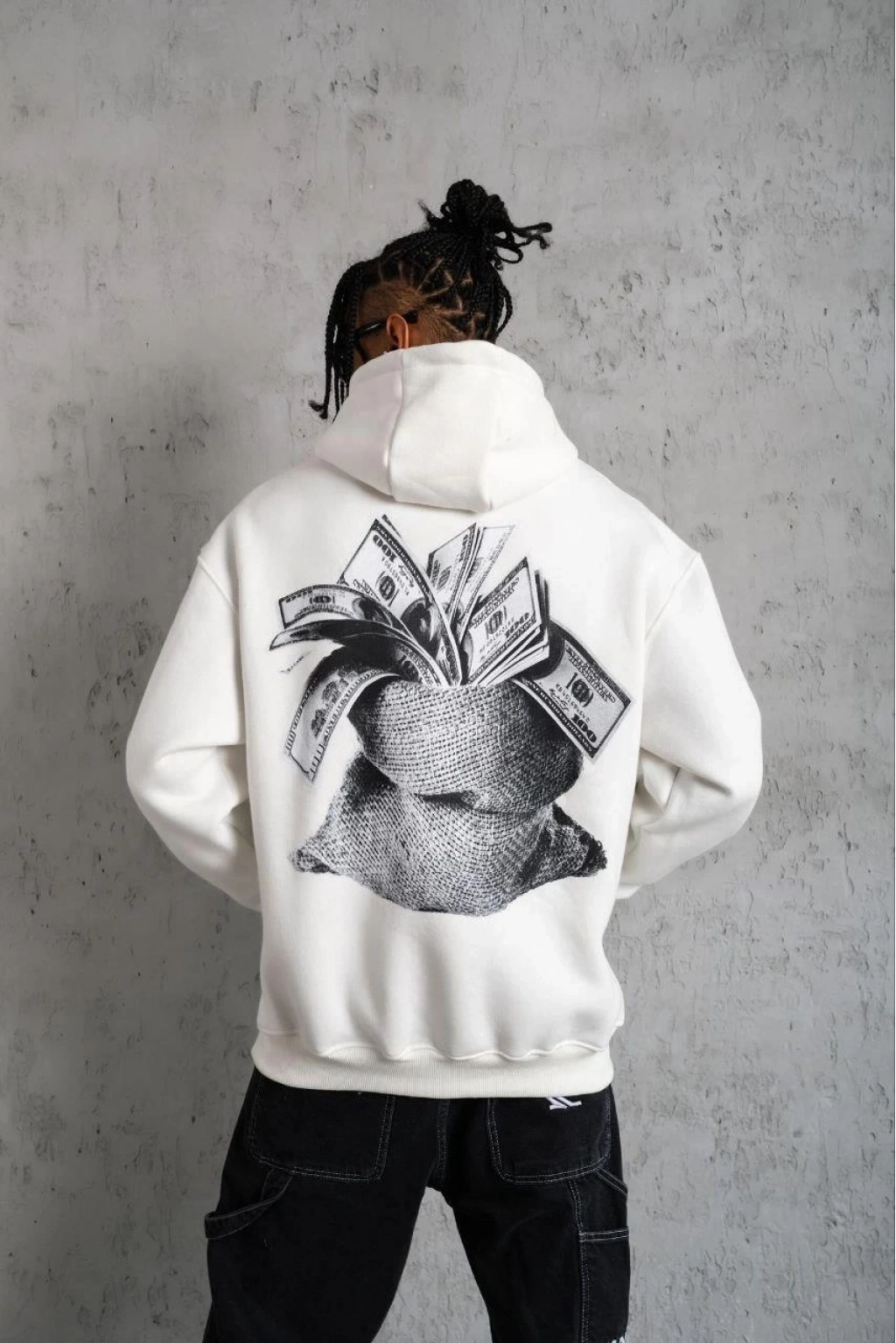 Kanguru Cep Baskılı Kapüşonlu Sweatshirt - Beyaz -