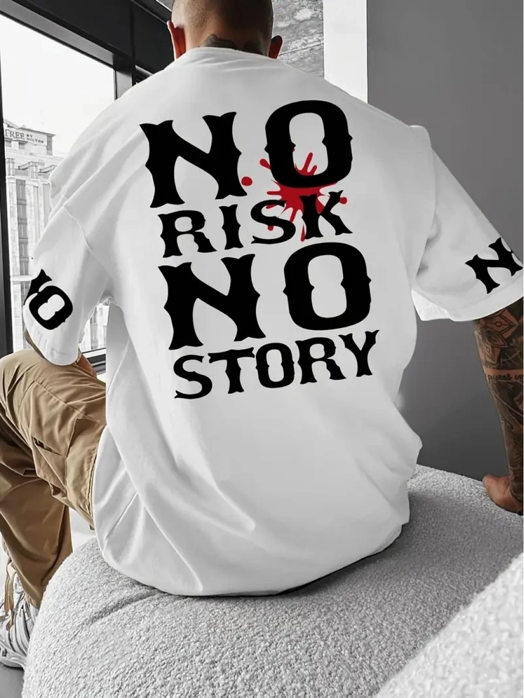 No Risk No Story Baskılı Oversize Bisiklet Yaka T-shirt - Beyaz -