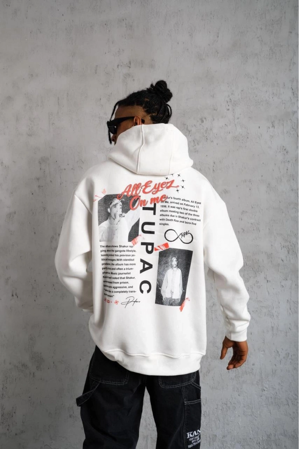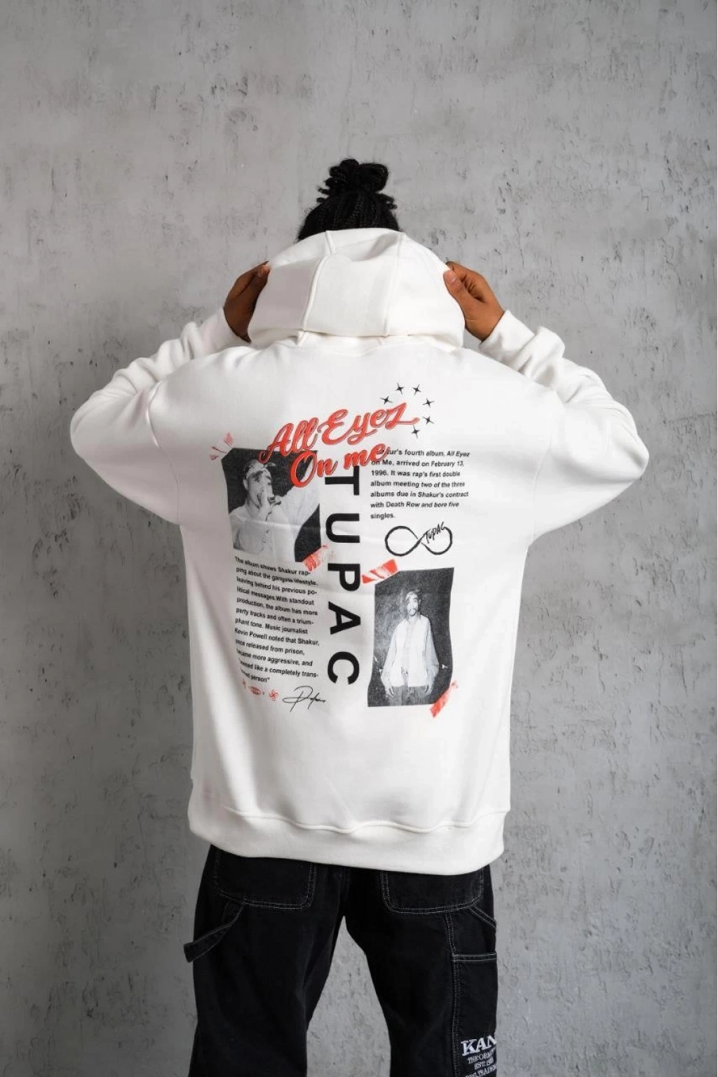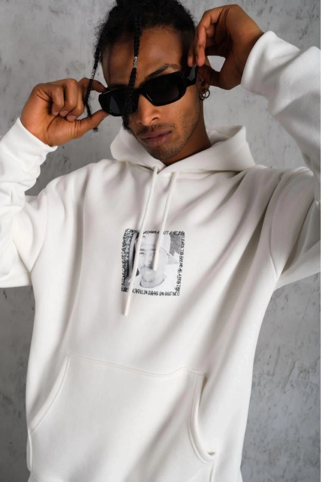 Ön Arka Baskılı Kapşonlu Sweat - Beyaz -