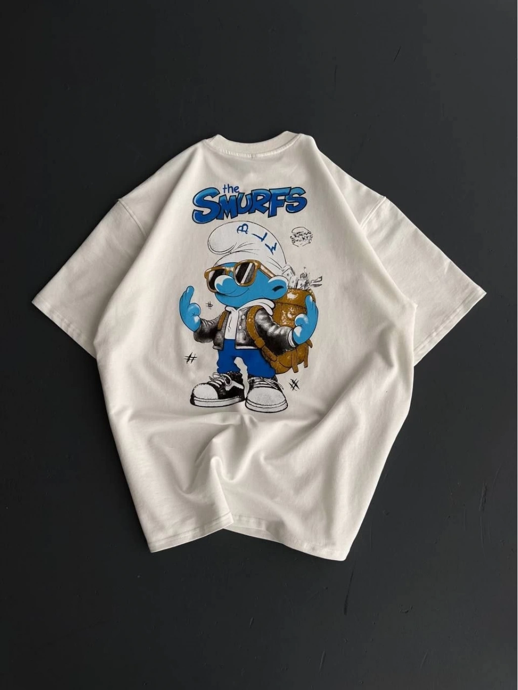 Ön ve Arka Baskılı Oversize Bisiklet Yaka T-shirt- Beyaz -