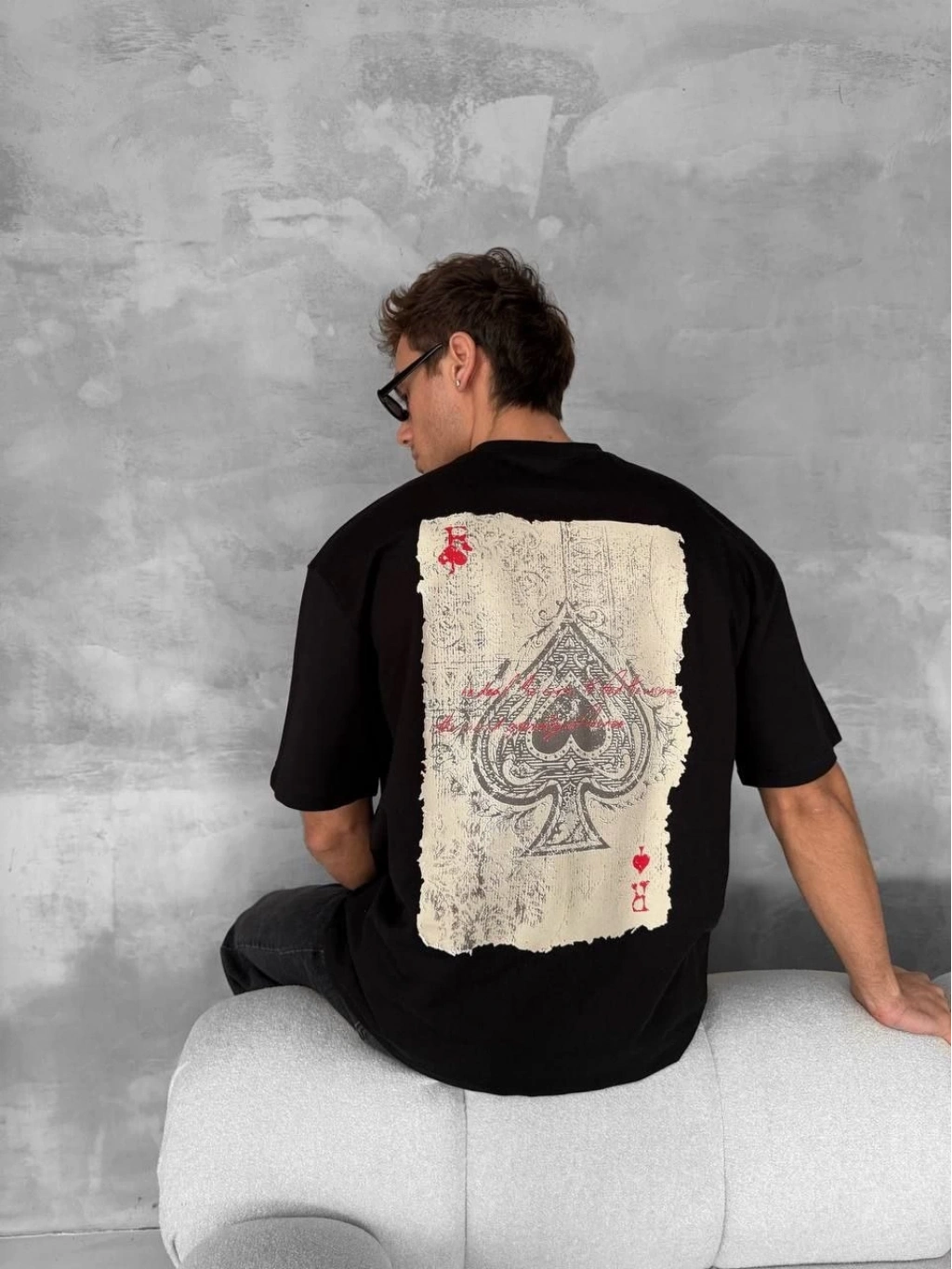 Ön ve Arka Baskılı Oversize Bisiklet Yaka T-shirt - Siyah -