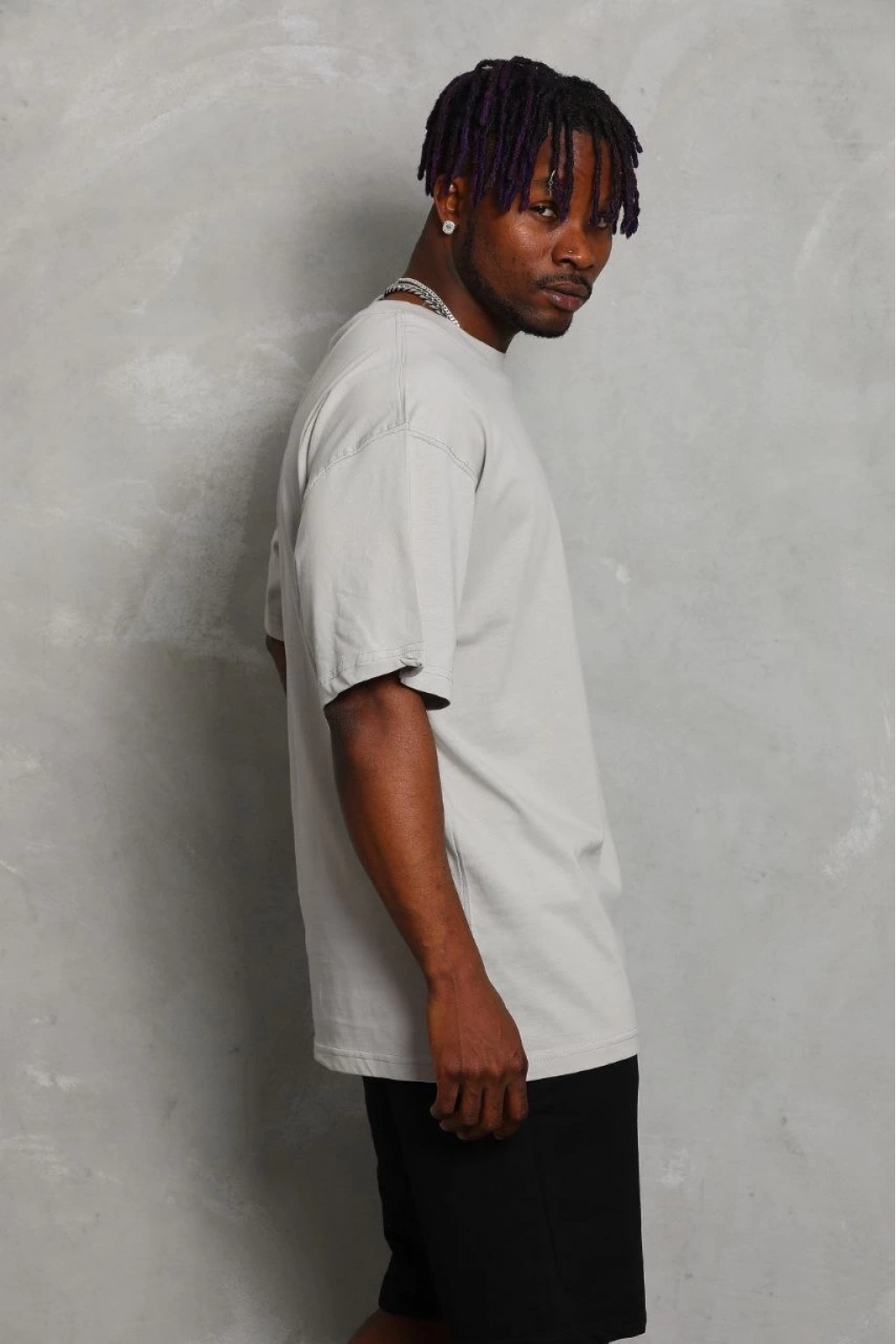 Oversize Düz Bisiklet Yaka T-Shirt - Gri -