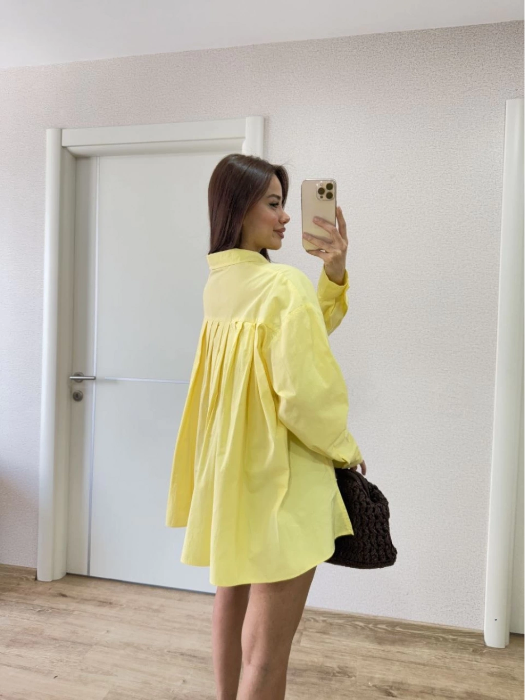 Poplin Yakalı Yandan Yırtmaçlı Arka Pens Detaylı Gömlek - Sarı -
