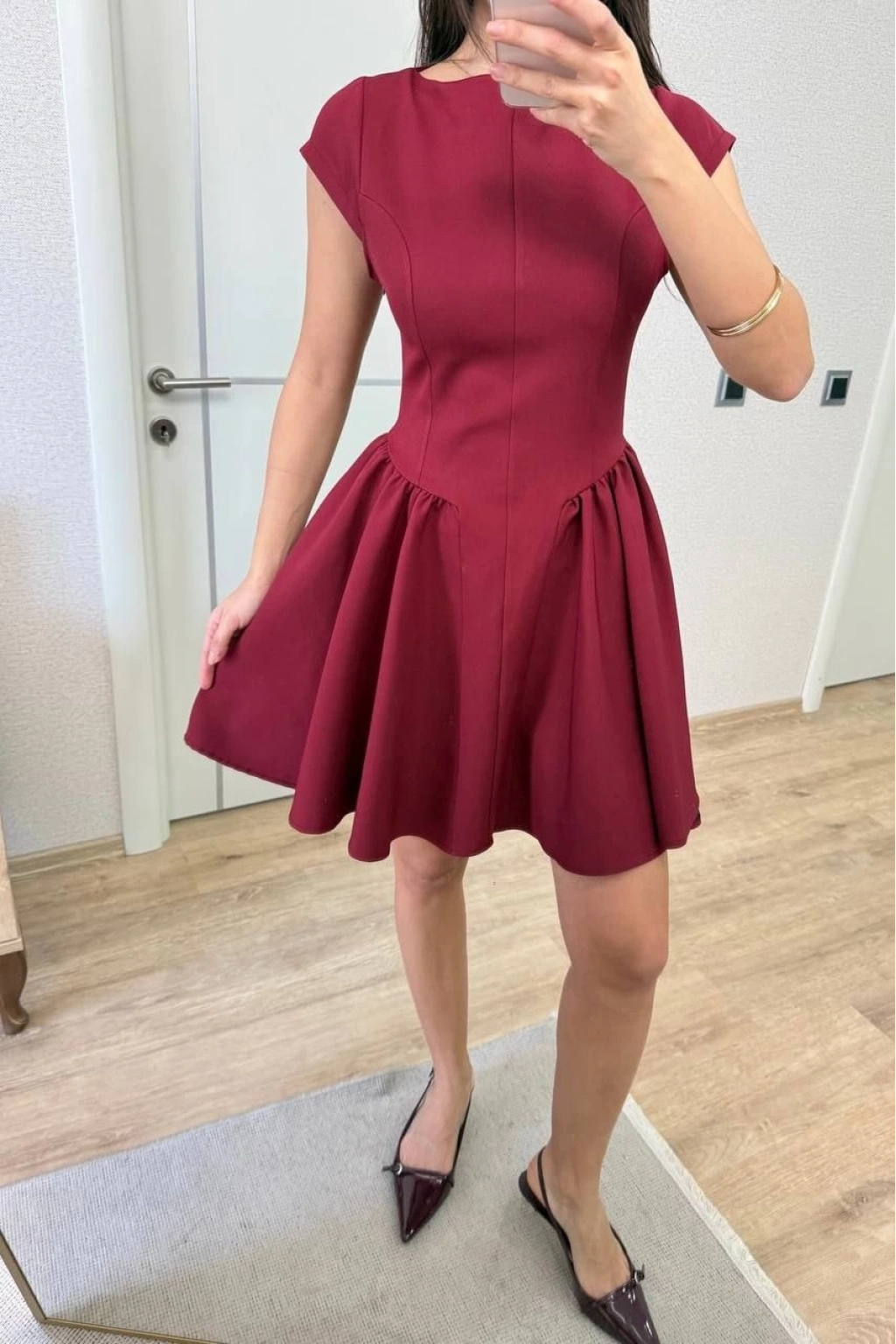 Sırt dekolteli Çan Detaylı Mini Elbise - Bordo -