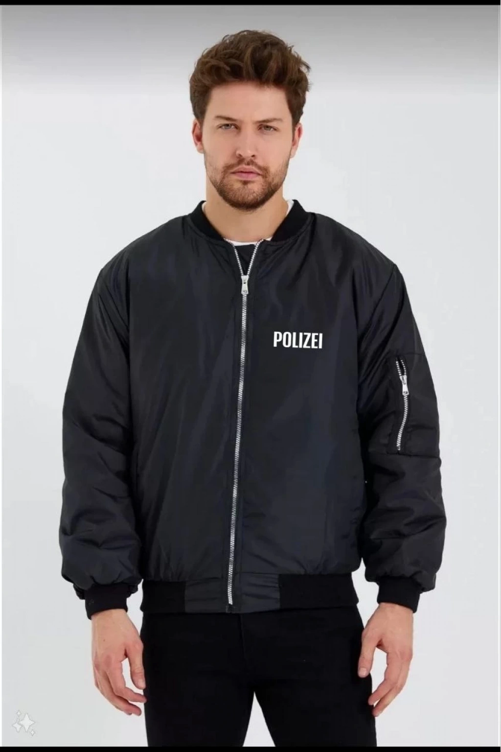 Siyah Bomber Mont – POLIZEI Yazılı, Siyah -