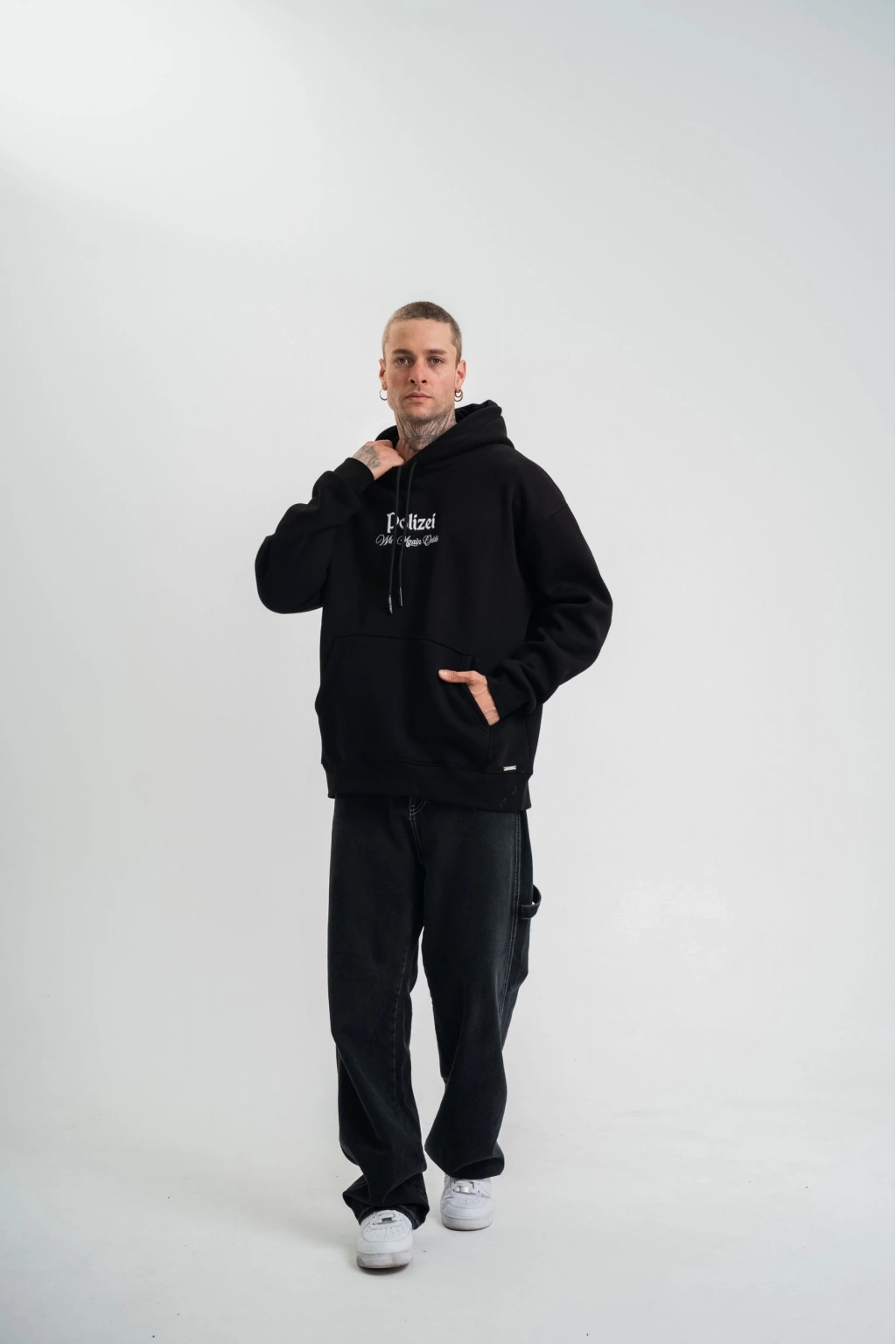 Üç İplik Kapşonlu Dijital Patchli SweatShirt - Siyah -