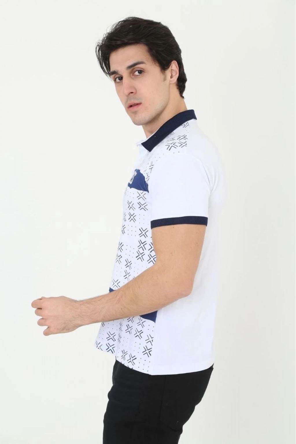 Yakalı Slim Fit Baskılı T-Shirt - Beyaz -