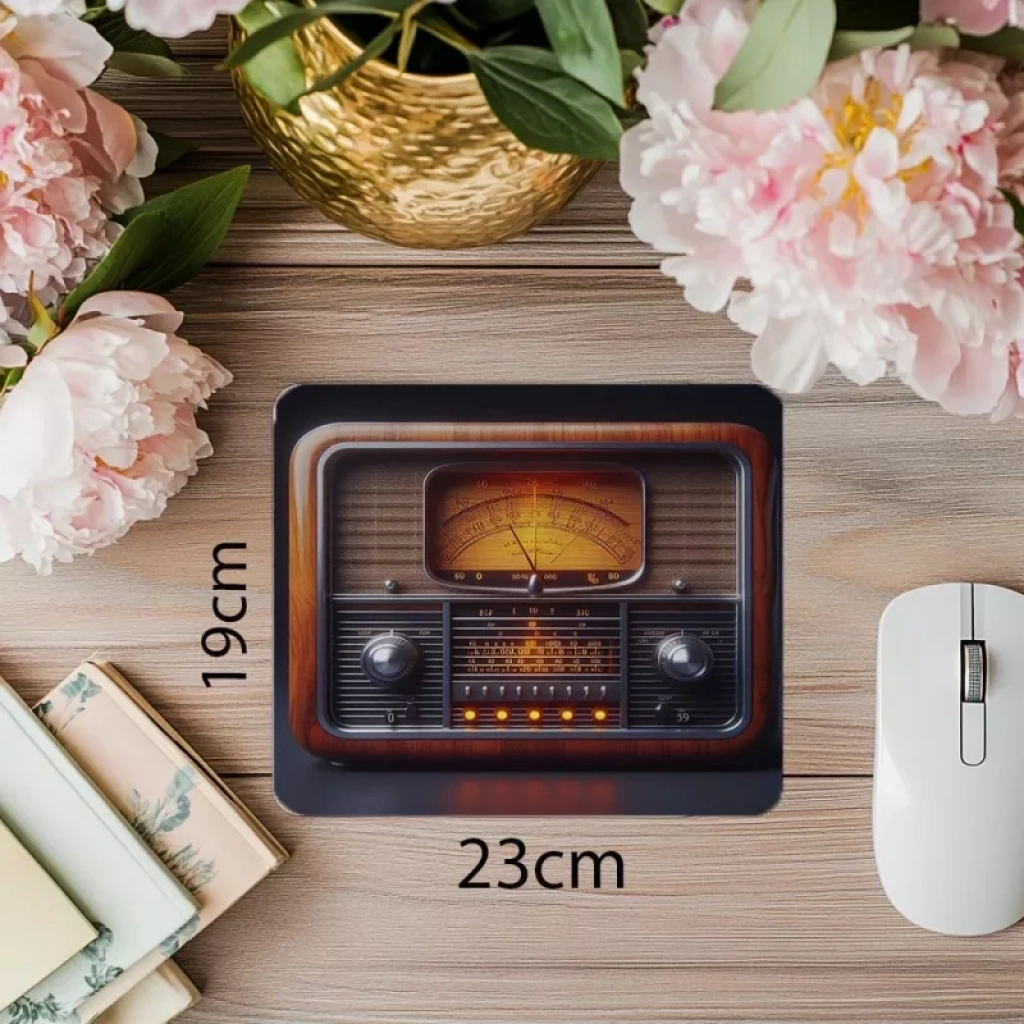 Vintage radyo döner düğme temasıyla tasarlanmış yüzey, hassas izleme performansı ve dayanıklı kaymaz altlıkla işlevsel kullanım sunar.,