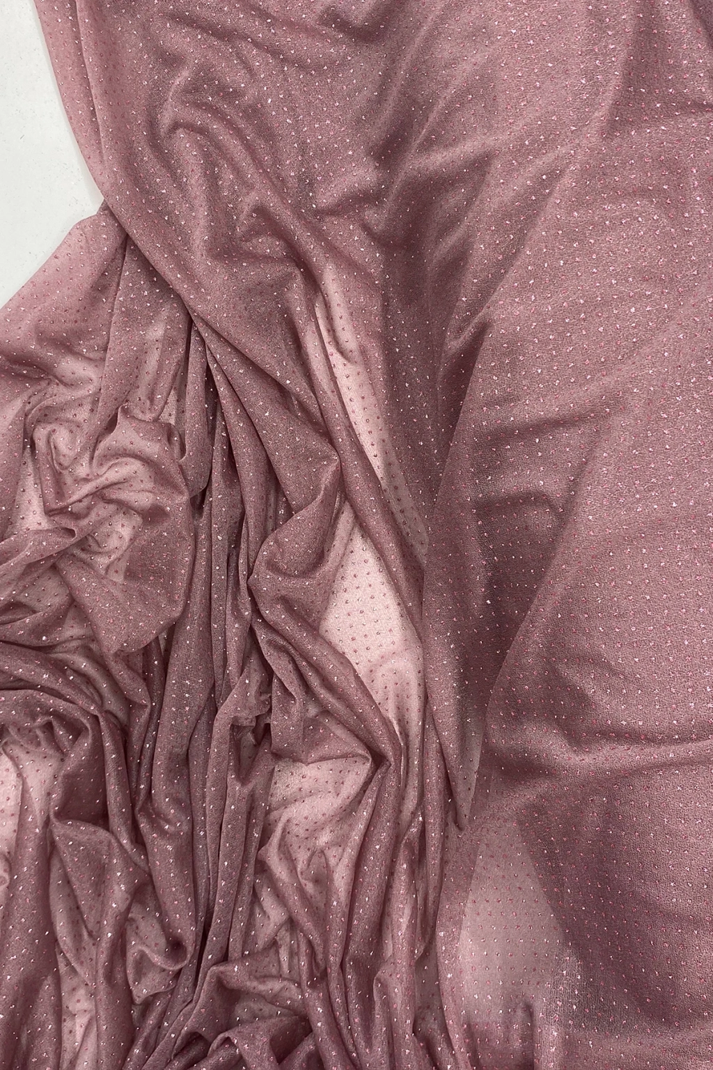 Yağmur Damlası Simli Abiye Elbise Şallık Tül Kumaş Koyu Gül Kurusu 36