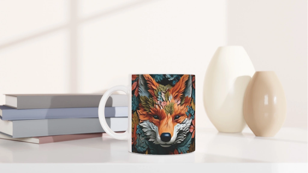 Yaprak Desenli Tilki İllüstrasyonlu Baskılı Kupa Bardak, doğal tonların ve detaylı çizimlerin birleşimiyle göz alıcı bir görünüm sunuyor. Sıra dışı tasarımıyla hem doğa tutkunlarına hem de sanatseverlere hitap ediyor.