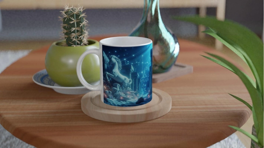 Yay Burcu Baskılı Kahve Kupası - Astral Denizaltı Dünyası Vs4