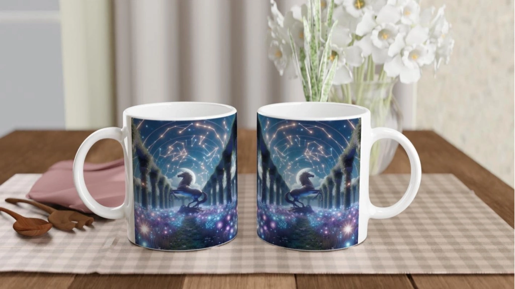 Yay Burcu Baskılı Kahve Kupası - Ay ışığında Zodyak Bahçesi Vs4