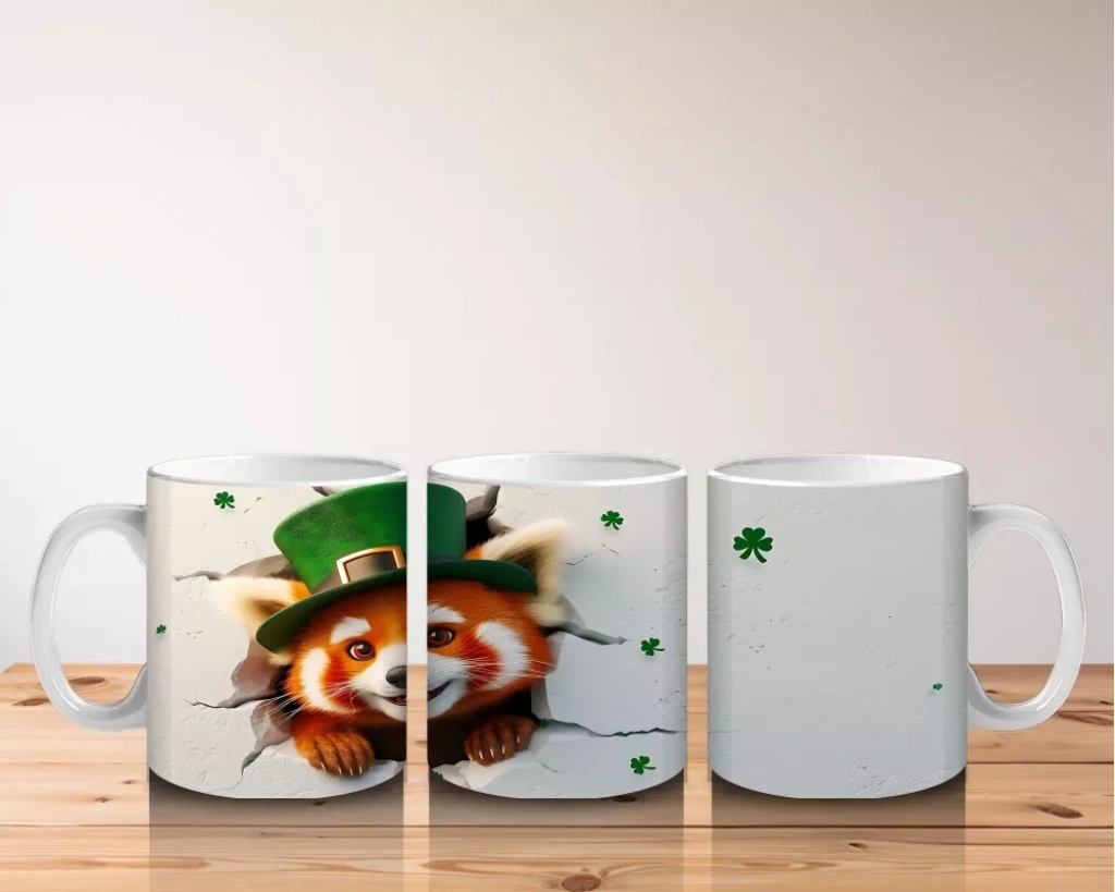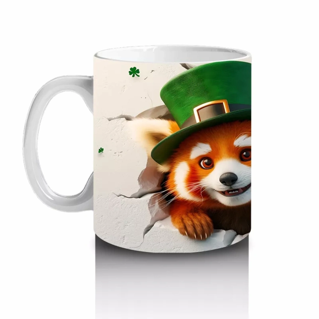 Yeşil St. Patrick şapkasıyla süslenmiş kırmızı panda ve etrafındaki yonca yaprakları, sevimlilik ve şans temasını bir araya getiriyor. Farklı ve dikkat çekici hayvan figürlerini sevenler için özel bir tasarım.