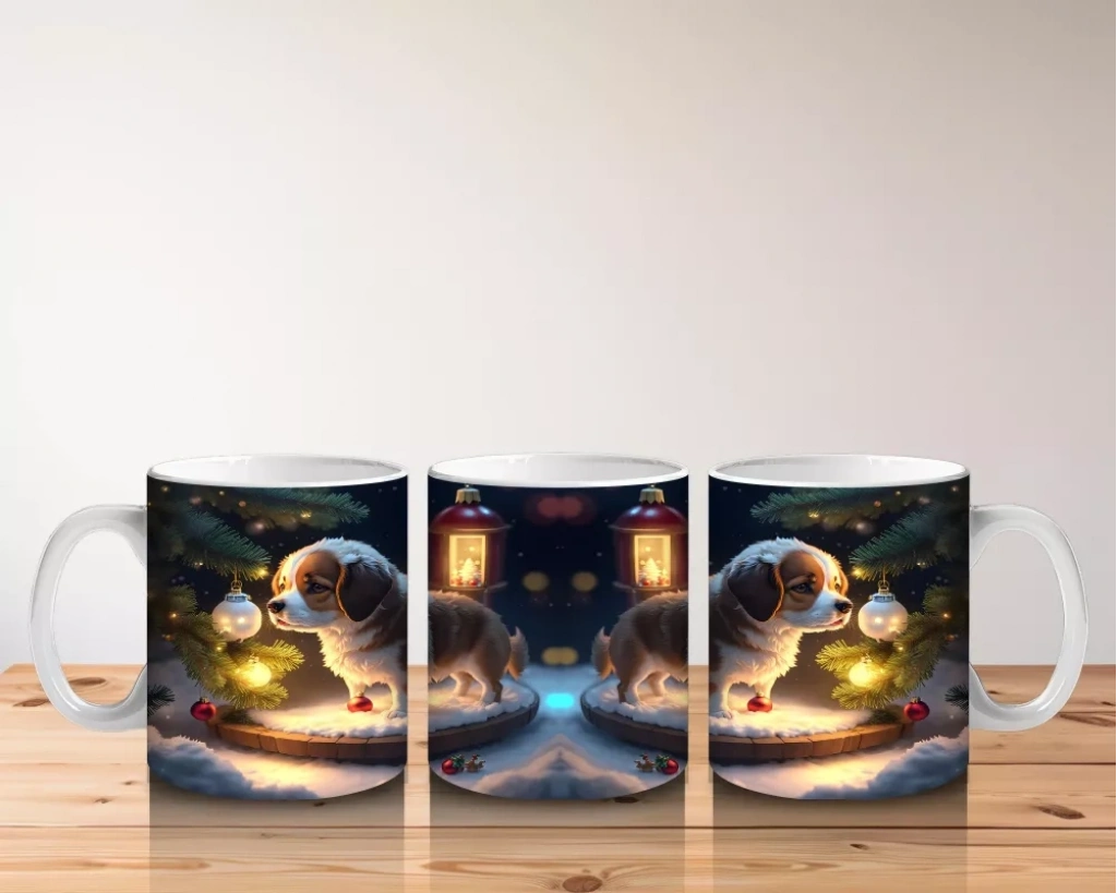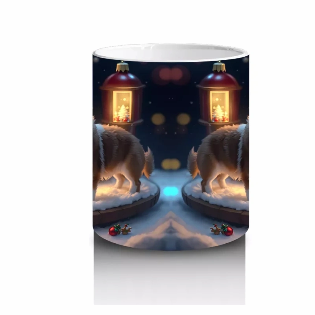 Yılbaşı Temalı Işıklarla Süslenmiş Köpekler – Baskılı Kahve Kupası