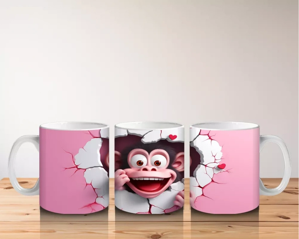 Yırtık Duvar Efektli Sevimli Maymun – Baskılı Kahve Kupası