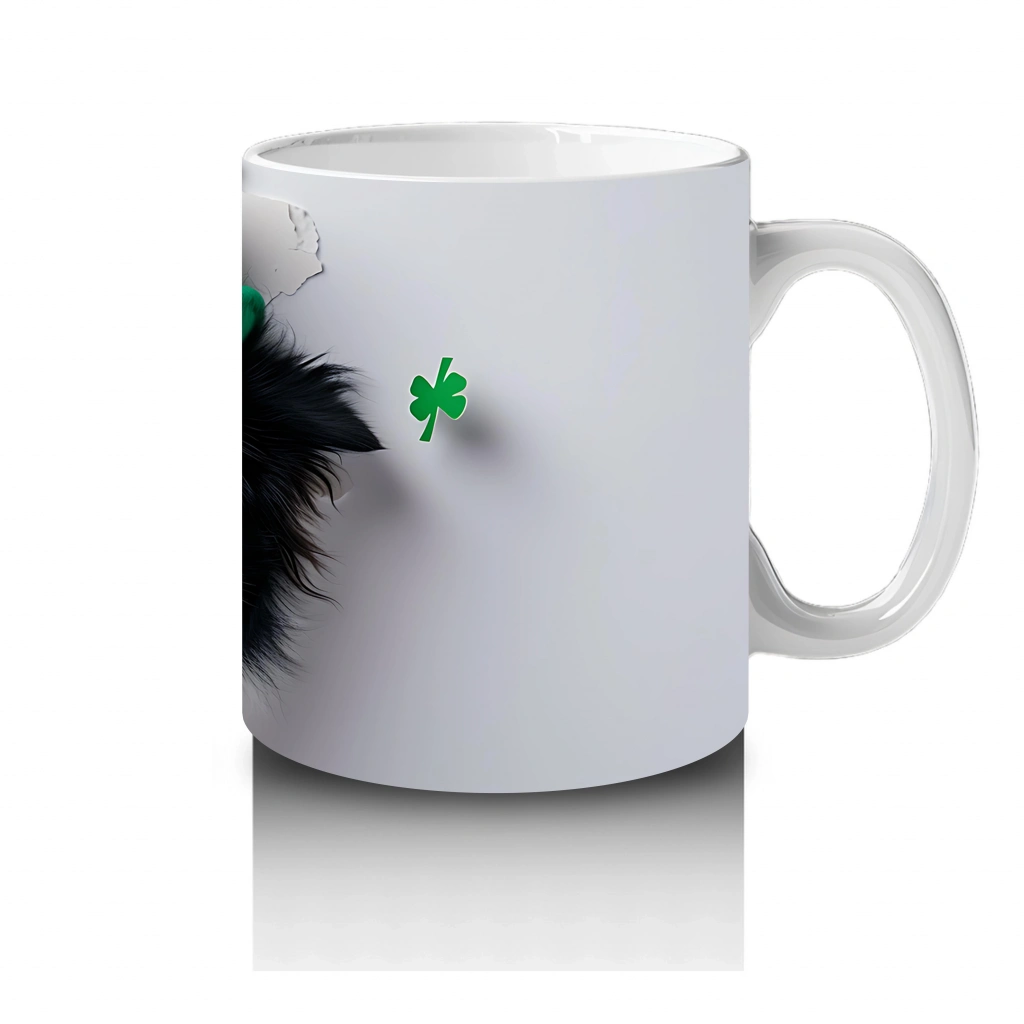 Yoncalarla Süslenmiş St. Patrick’s Temalı Border Collie – Baskılı Kahve Kupası