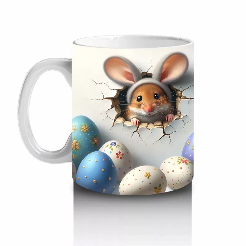 Yumurta kabuklarının arasından sevimli tavşanların bakışları, tazelik ve masumiyet dolu bir sahne yaratıyor. Doğal ve yaratıcı tasarımlardan hoşlananlara özel naif bir kupa.