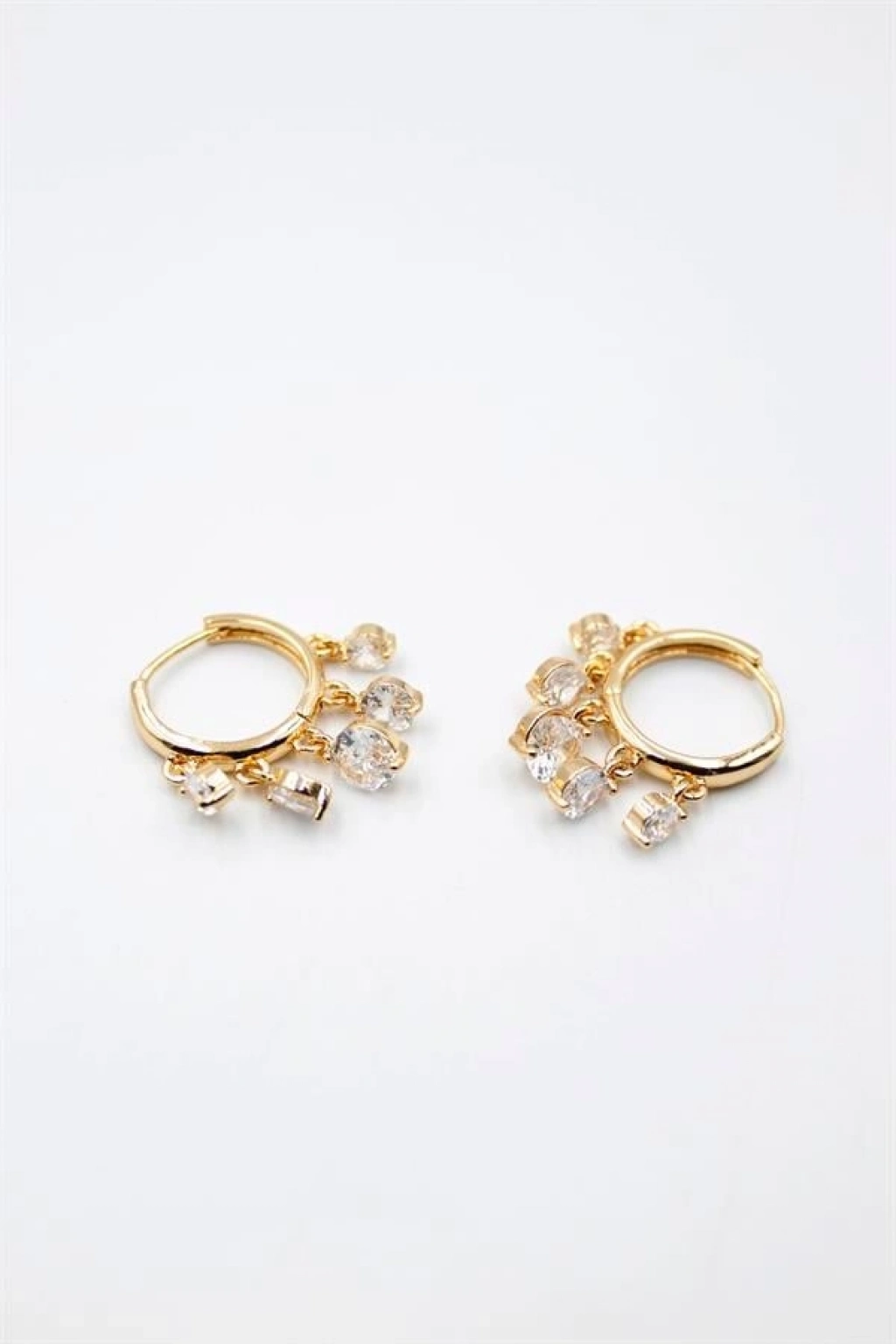 Yuvarlak Taşlı Shakira Küpe - Altın