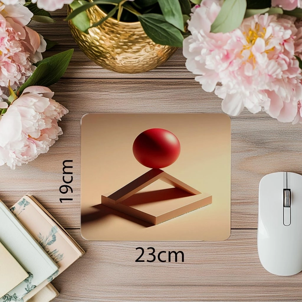 Dengede duran kırmızı küre tasarımıyla bu mousepad, dikkat çekici sadelik ve simetri sunar. Güçlü bir odak noktası oluşturan bu minimalist tasarım, modern masaüstlerine sanatsal bir dokunuş kazandırır.