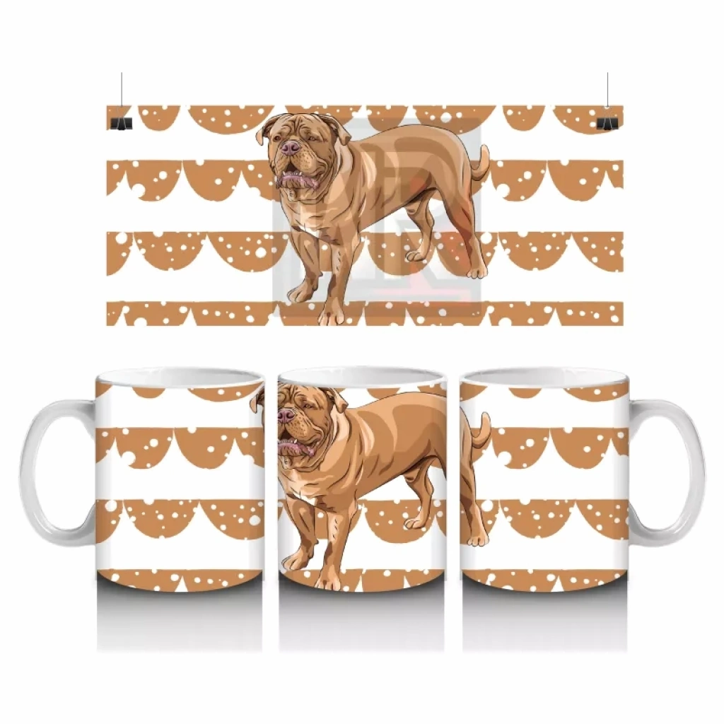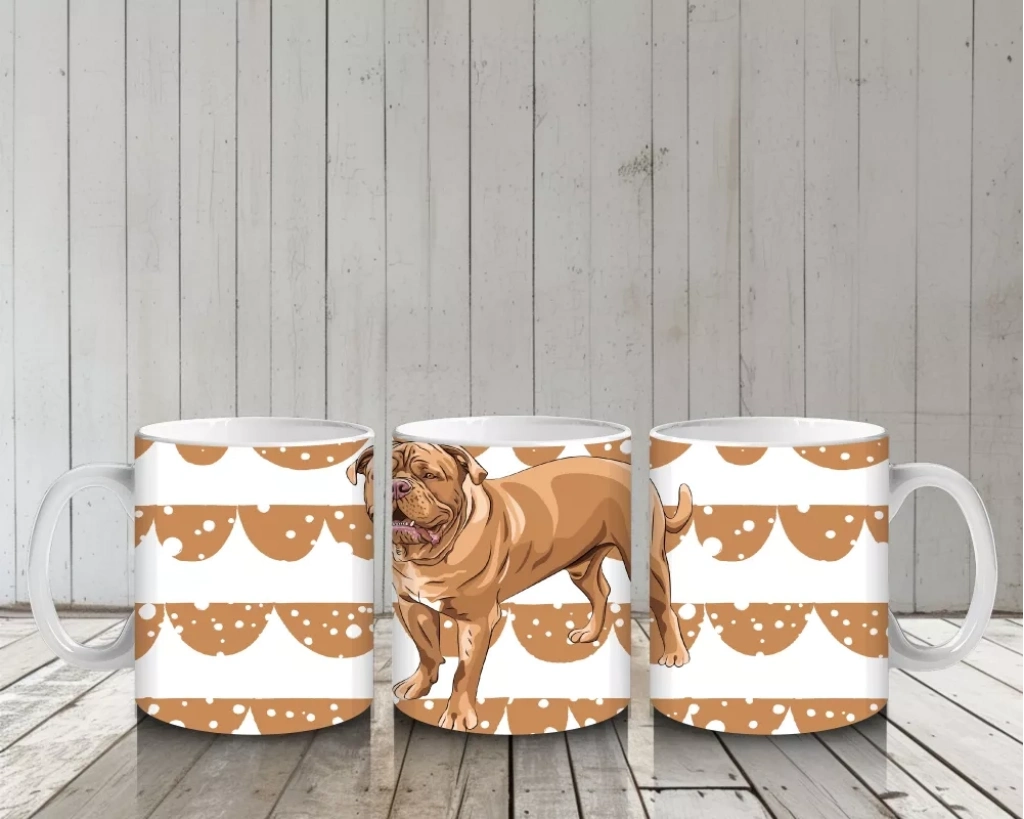 Desenli Arka Planda Realistik İngiliz Bulldog İllüstrasyonu – Baskılı Kahve Kupası