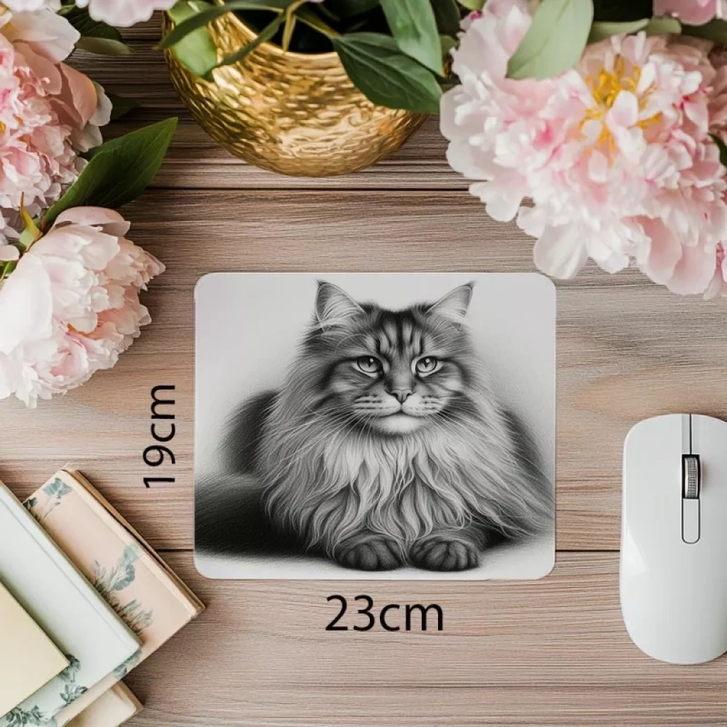 Dik oturan kedi figürü kalem çizimli mouse pad ile masanda zarif duruş ve sakinlik! İnce detaylar ve rahat yüzeyiyle oyun ve çalışma keyfini artır.