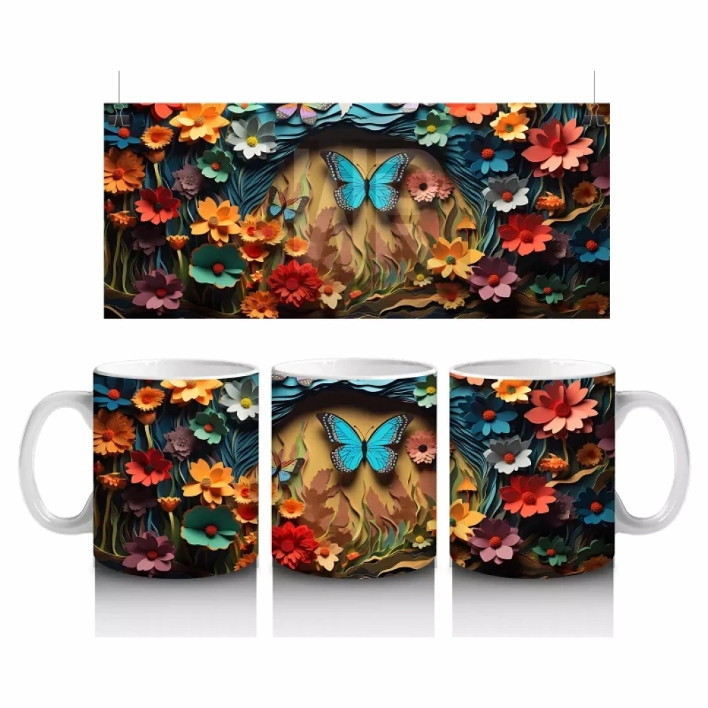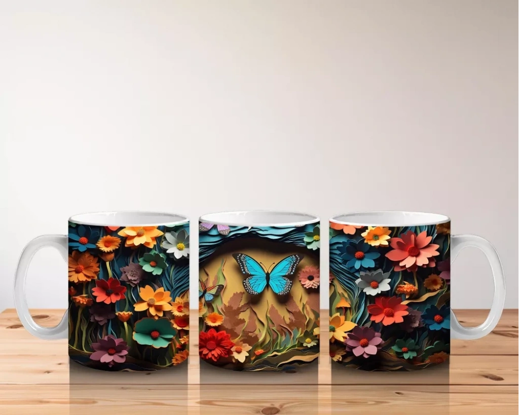 Doğal Taş Üzerinde Açık Mavi Kelebek – Baskılı Kahve Kupası