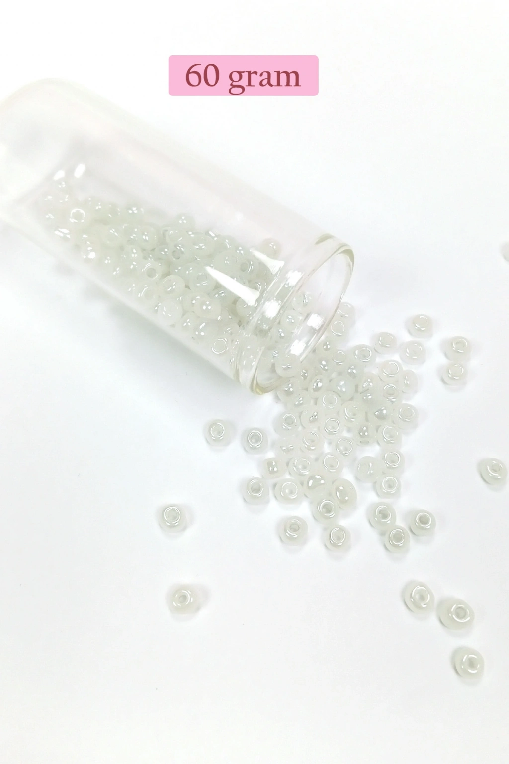 Dökme Cam Kum Boncuk Büyük Boy (6/0) 4 mm - 60 Gram - İnci Beyaz - BNC117