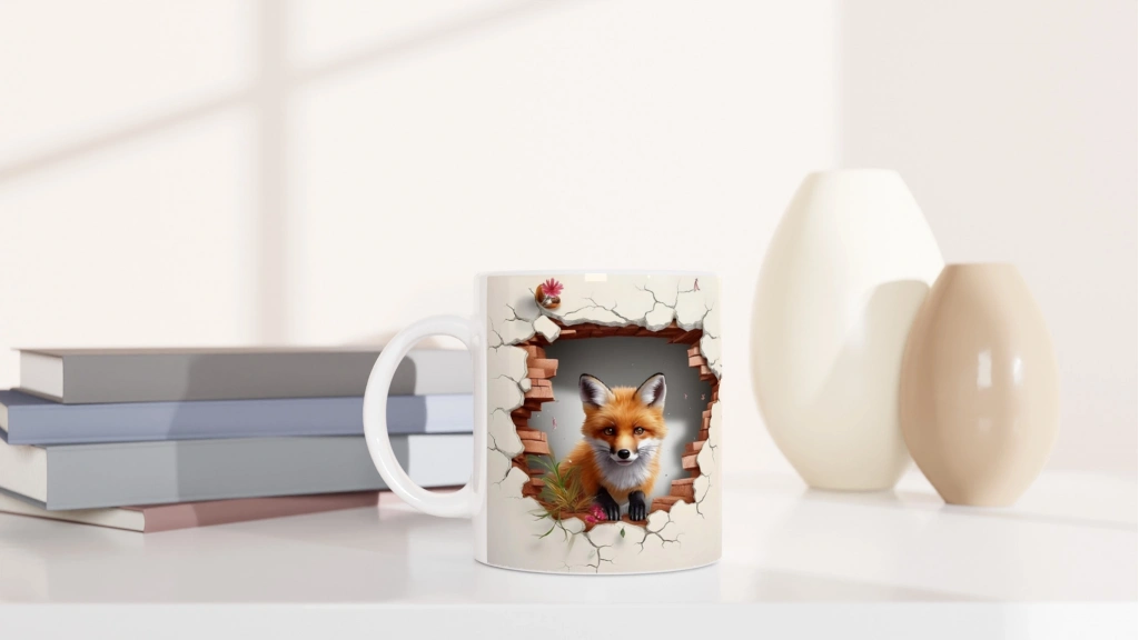Duvarı Delen Tilki Baskılı Kupa Bardak, doğanın en zeki ve sevimli canlılarından ilham aldı.
