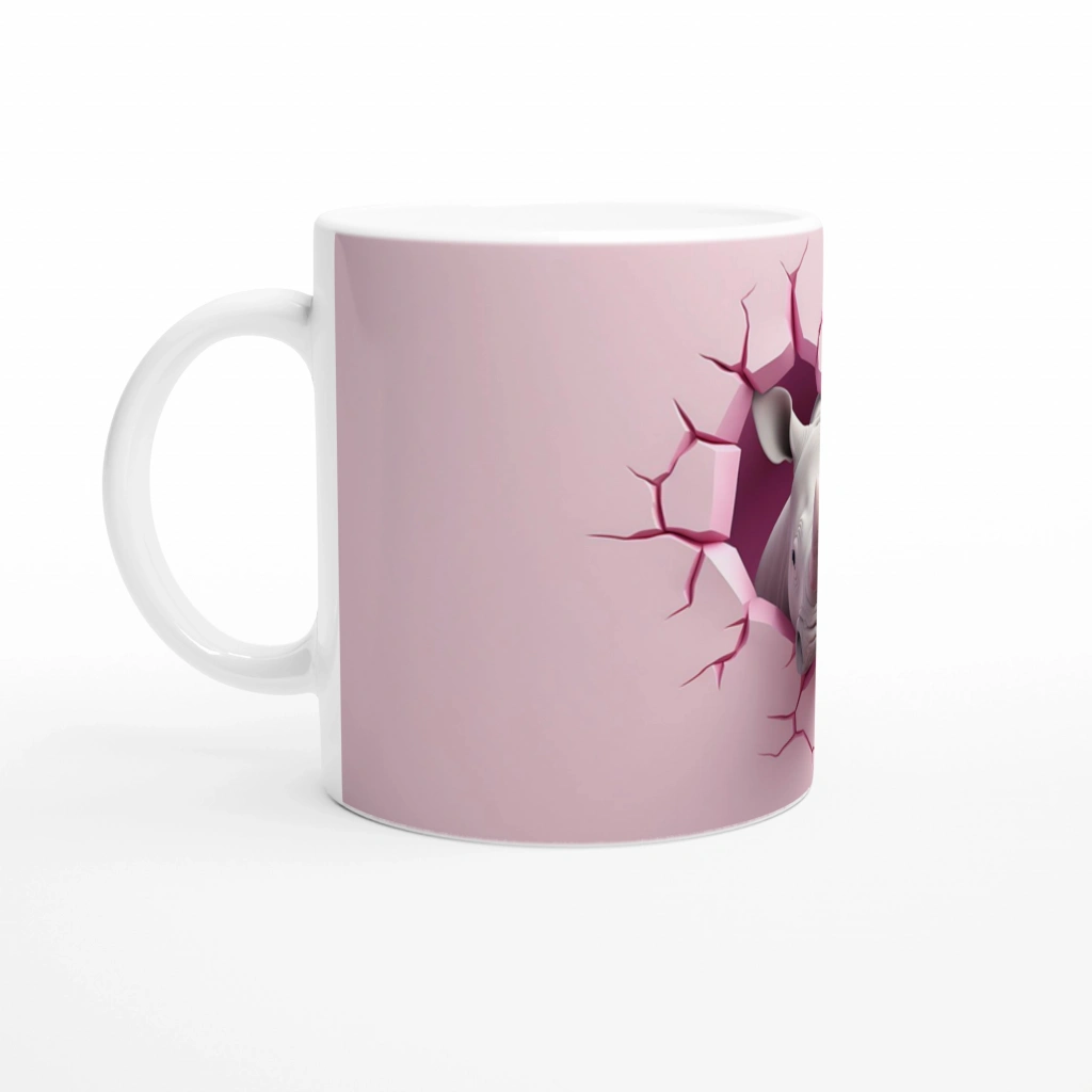 Duvarı Yarmış Gergedan Temalı Baskılı Kupa Bardak