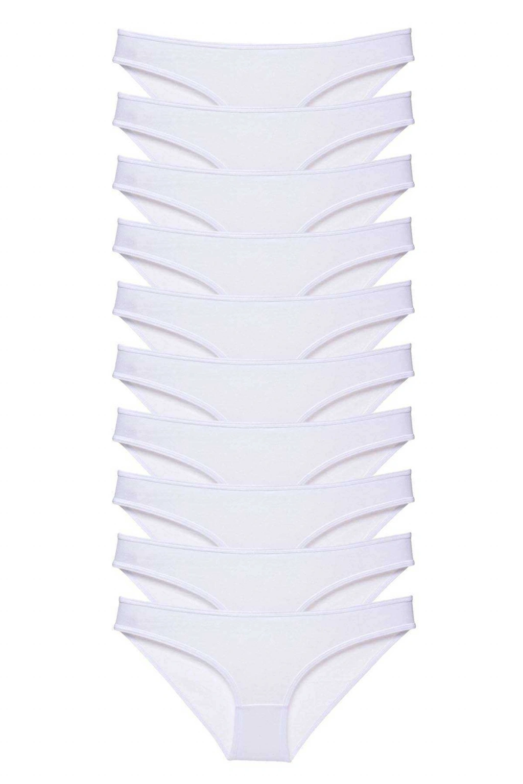 10 adet Süper Eko Set Likralı Kadın Slip Külot Beyaz