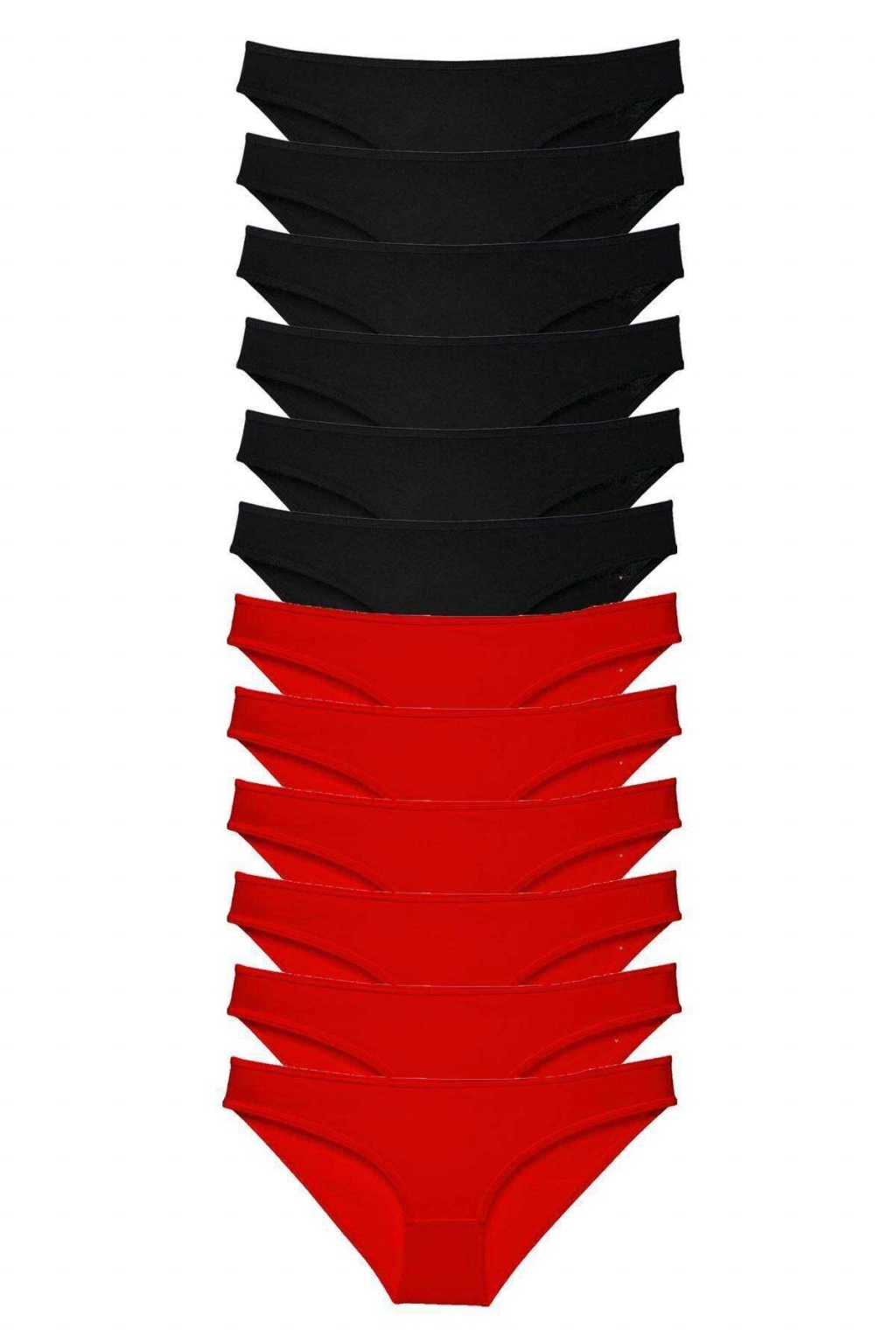 12 adet Süper Eko Set Likralı Kadın Slip Külot Siyah Kırmızı