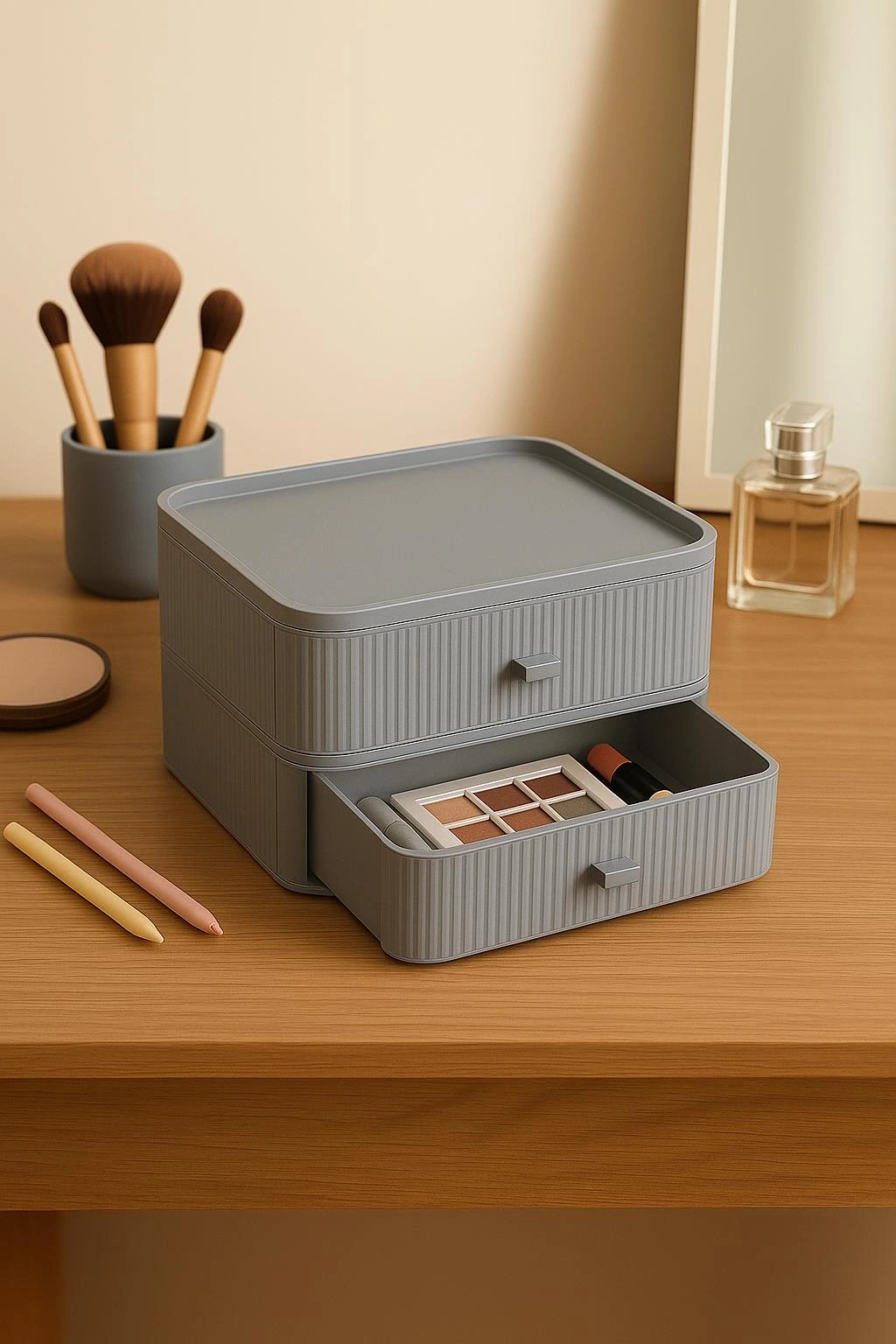 2 Katlı Çekmeceli Makyaj Organizeri & Çok Amaçlı Düzenleyici Gri