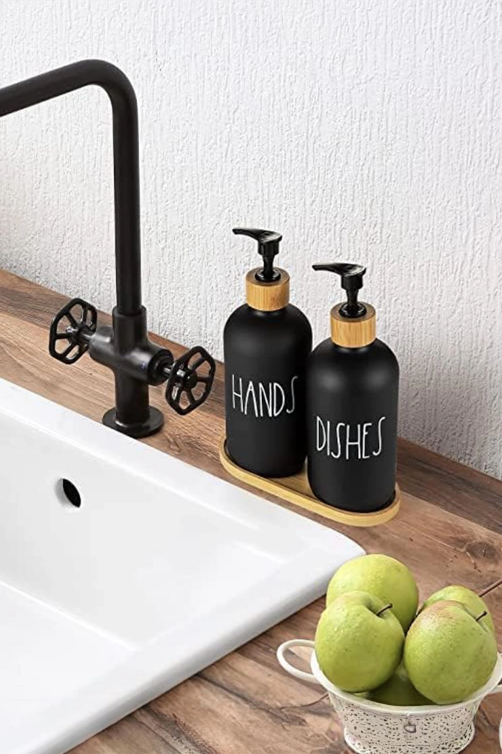 2 Li Bambu Altlıklı Sıvı Sabunluk Seti Siyah