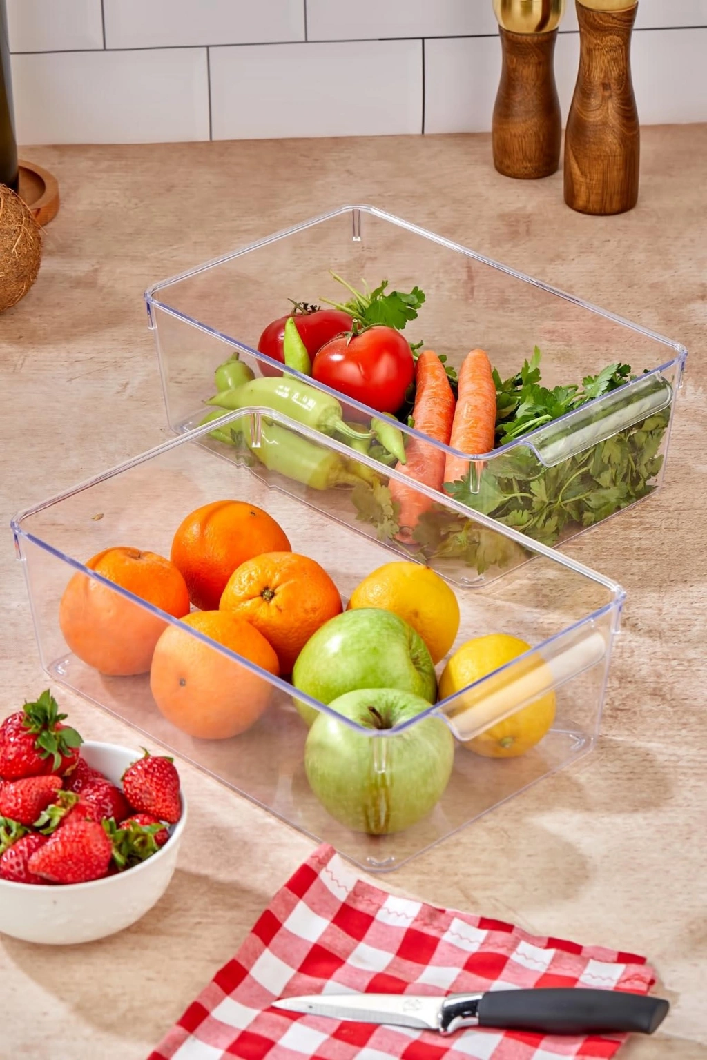Ürün Hikayesi: Şeffaf akrilik malzemeden üretilen buzdolabı organizerleri, yiyeceklerinizi düzenli ve kolay erişilebilir şekilde saklamanızı sağlar. Farklı hacim seçenekleriyle mutfakta pratik kullanım sunar.