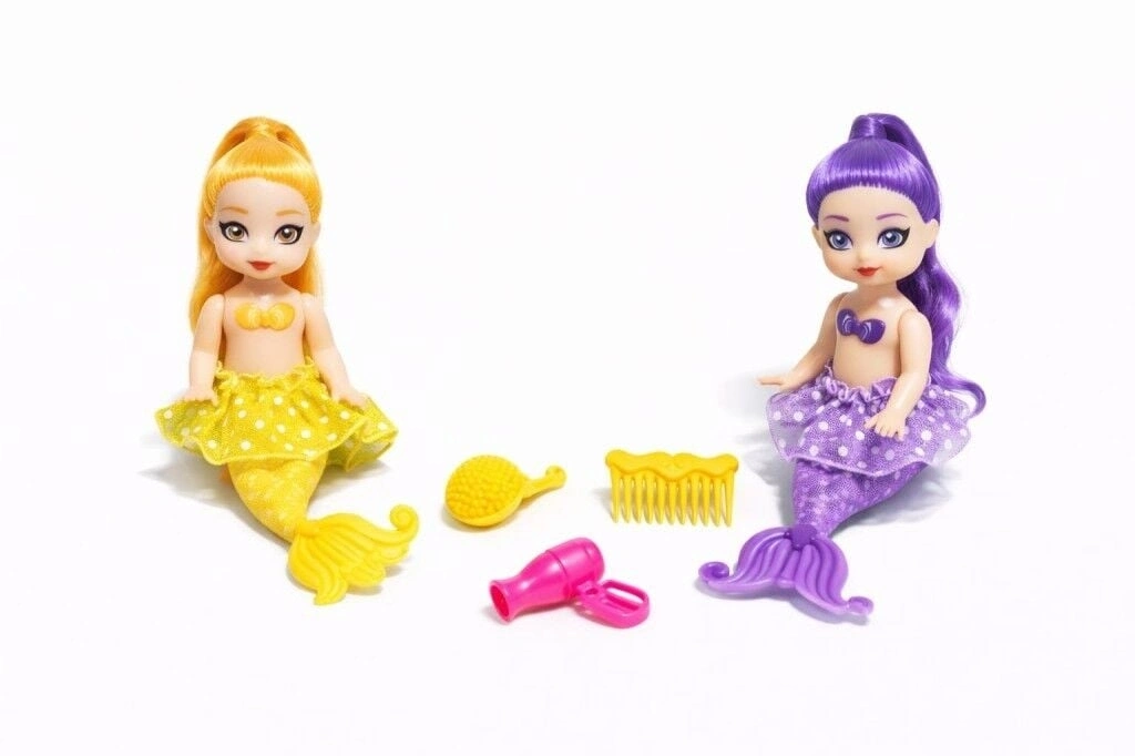 2'li Deniz Kızı Bebek Seti - Hareketli Eklemler ve Aksesuarlı -Sarı & Mor