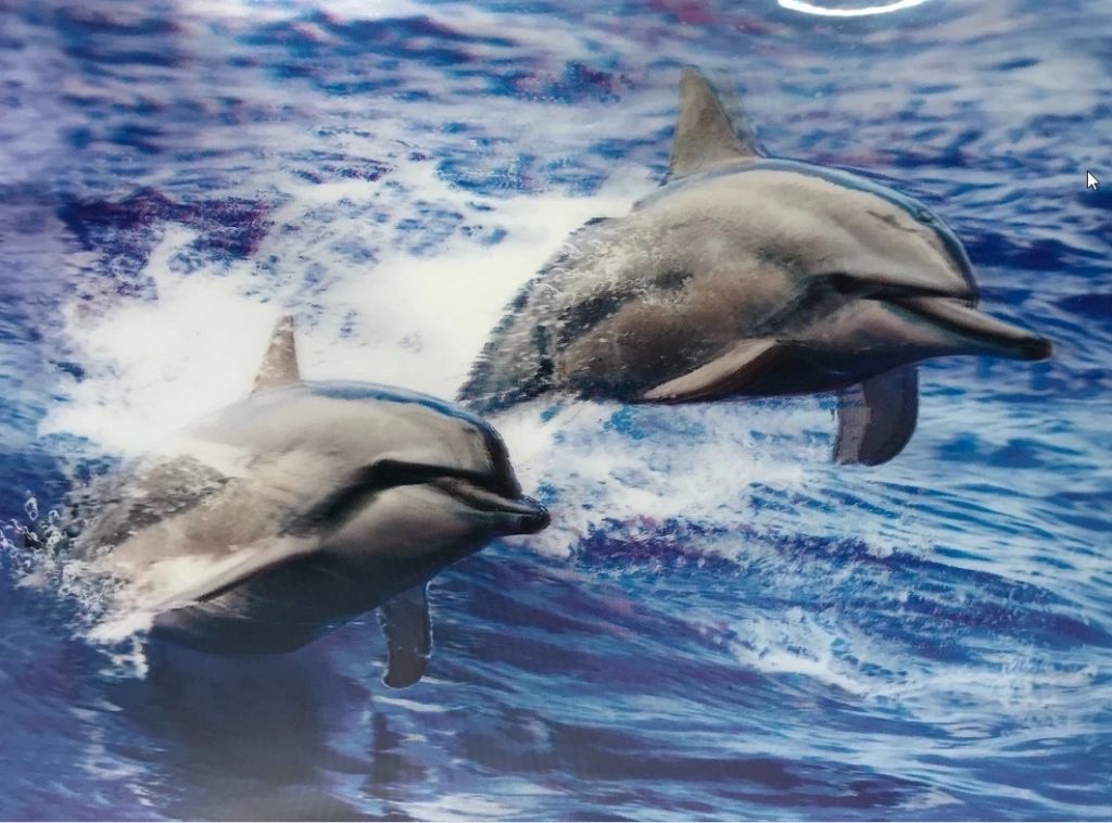 • 3 Boyutlu Resim Sevimli Yunuslar İkili Yunus Resmi Tablosu 30x40 Cm