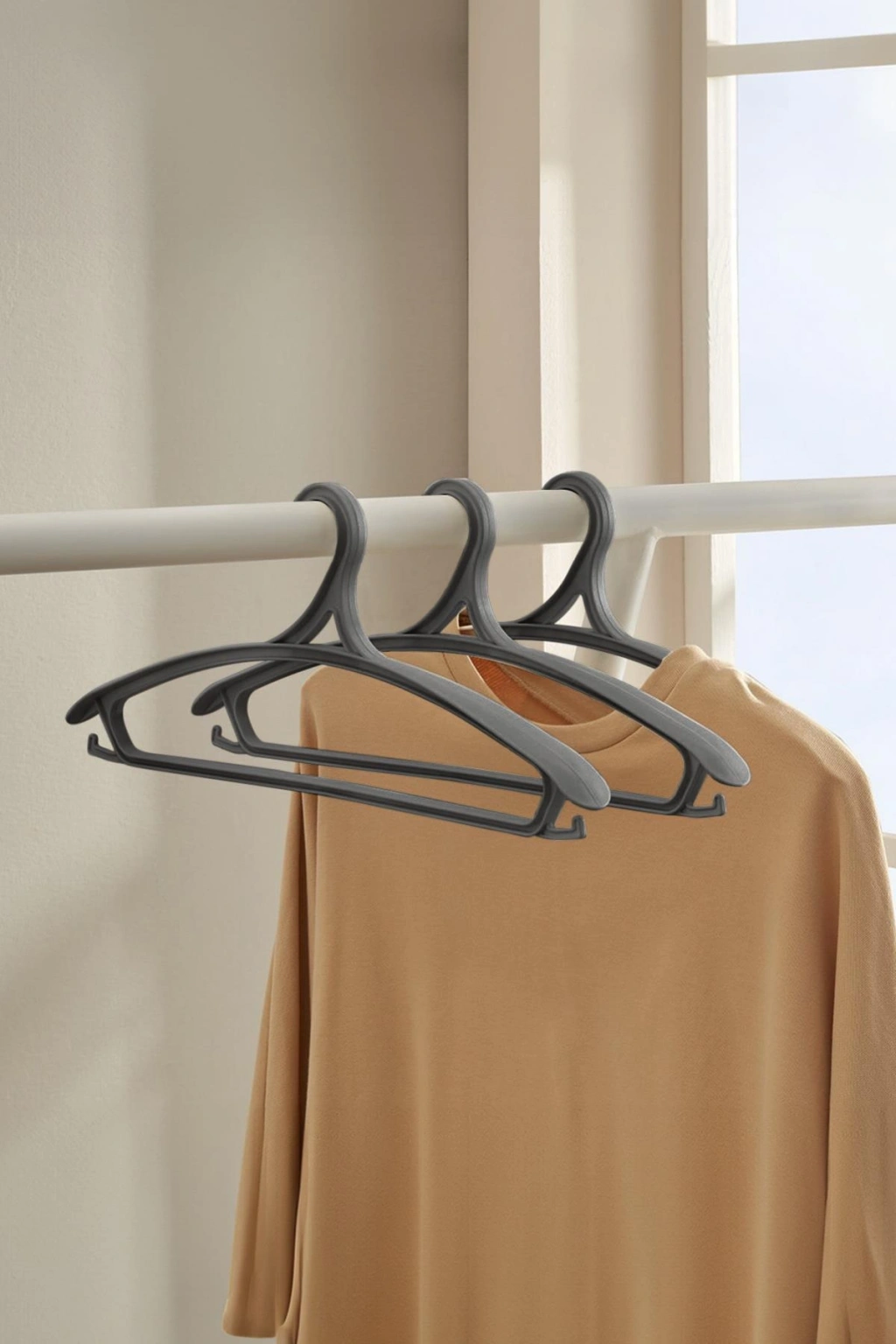 3 Lü Geniş Kıyafet Ve Elbise Askısı Füme 43 Cm