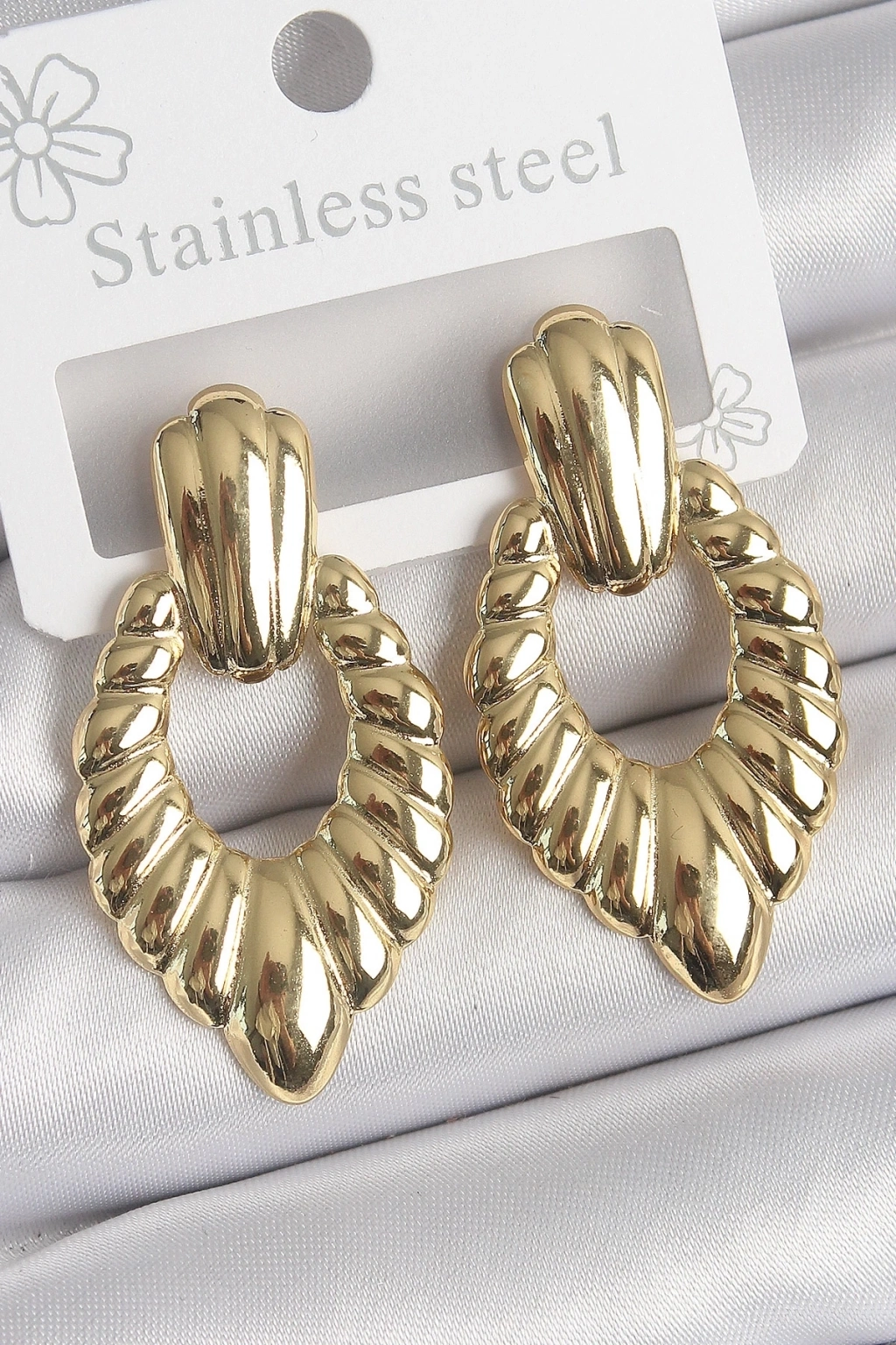 316 Çelik Gold Renk İşlemeli Motiif Model Kadın Küpe