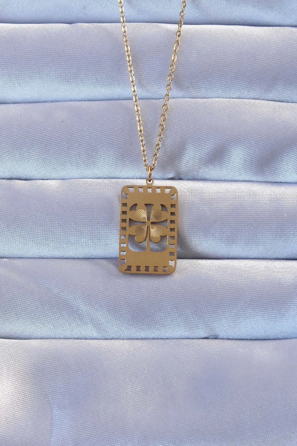 316L Altın Renk İşlemeli Yonca Model Vintage Kolye