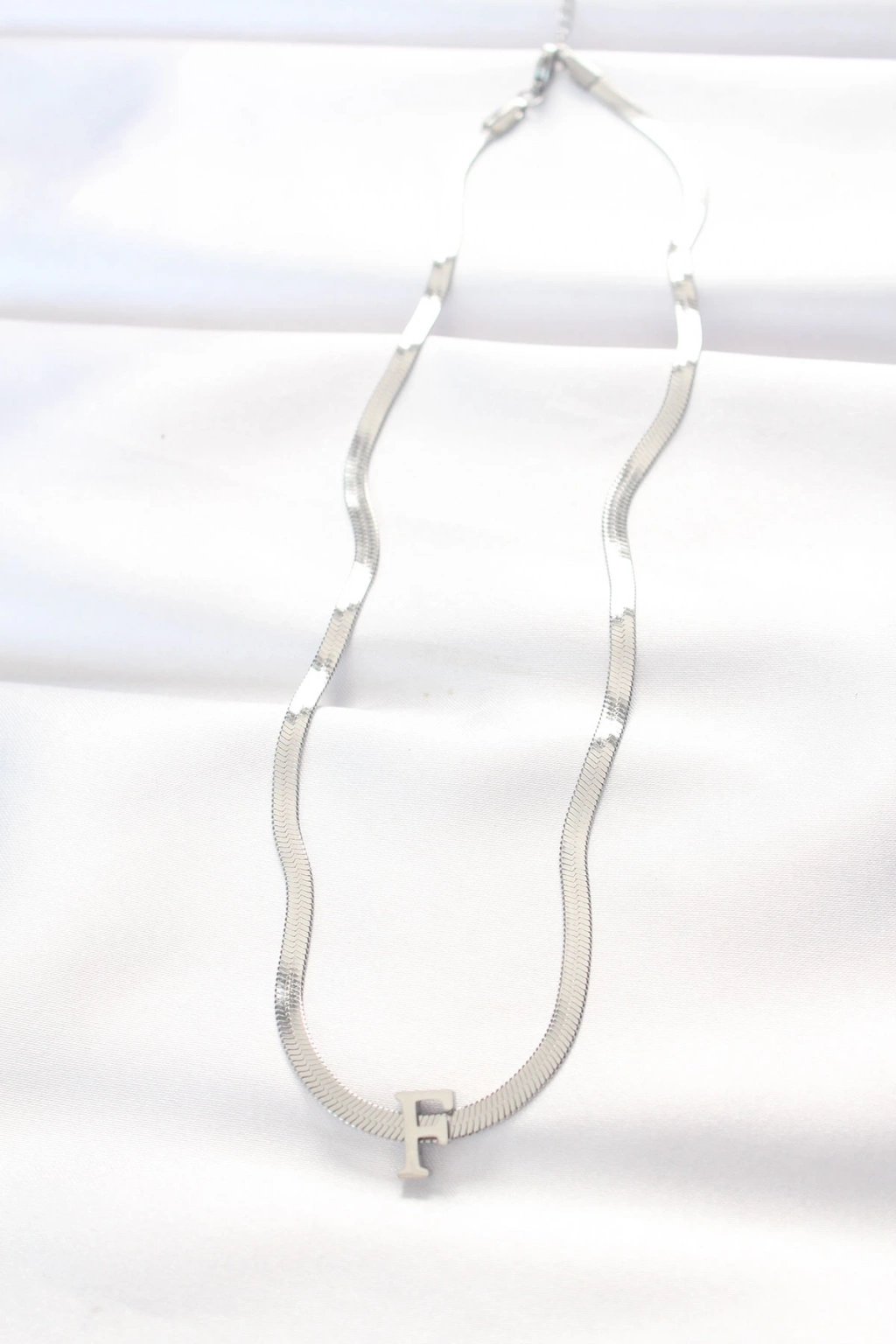316L Çelik F Harfli Silver Renk İtalyan Zincirli Kolye