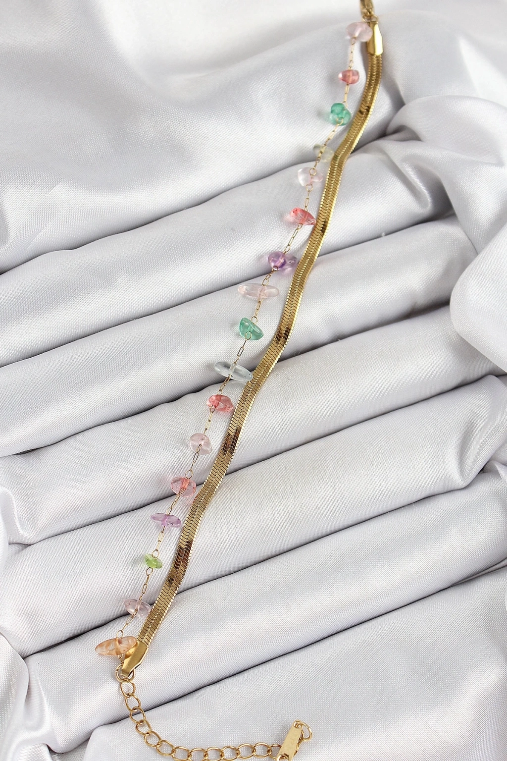 316L Çelik Gold Renk Kristal Karışık Renkli Taşlı Kadın Bileklik