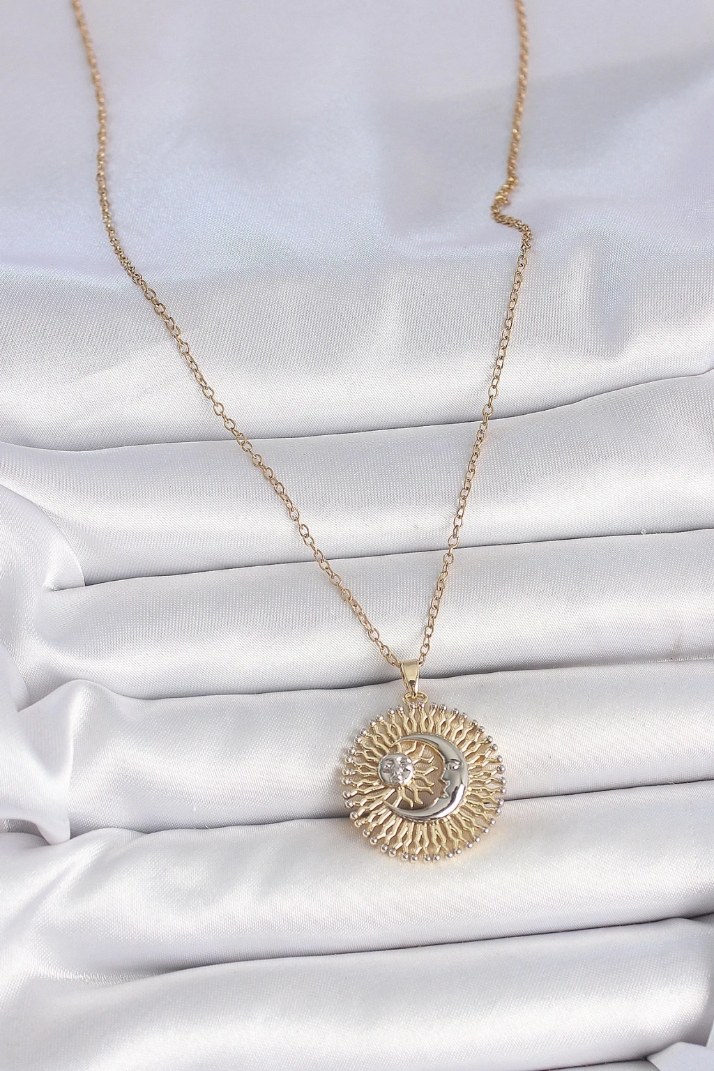 316L Çelik Gold Renk Mix Renk Ay Güneş Model Kadın Kolye